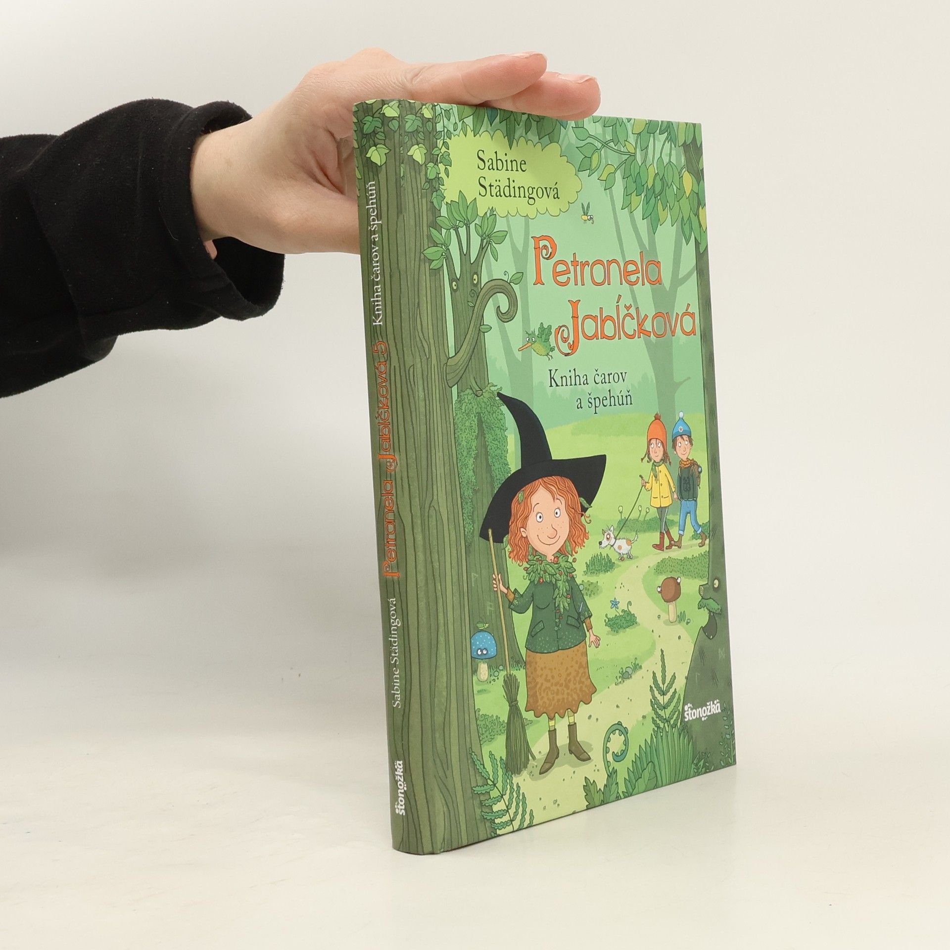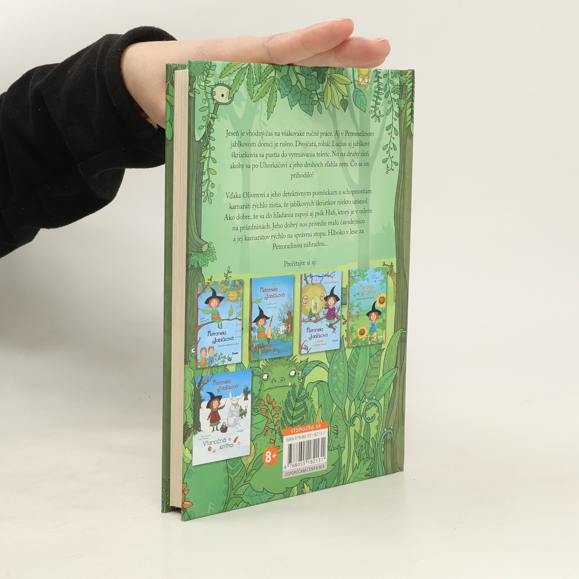 Petronela Jabĺčková je čarodejnica. No nie obyčajná! Má na starosti jablone, a ako sa v takomto prípade sluší a patrí, býva v jablku. Jeseň je vhodný čas na všakovaké ručné práce. Aj v Petronelinom jablkovom domci je rušno. Dvojčatá, roháč Lucius aj jablkoví škriatkovia sa pustia do vyrezávania tekvíc. No na druhý deň akoby sa po Uhorkáčovi a jeho druhoch zľahla zem. Čo sa im prihodilo? Vďaka Oliverovi a jeho detektívnym pomôckam a schopnostiam kamaráti rýchlo zistia, že jablkových škriatkov niekto uniesol. Ako dobre, že sa do hľadania zapojí aj psík Hafi, ktorý je v mlyne na prázdninách. Jeho dobrý nos privedie malú čarodejnicu a jej kamarátov rýchlo na správnu stopu. Hlboko v lese za Petronelinou záhradou... Sabine Städingová sa narodila roku 1965 v Hamburgu. Od detstva veľmi rada vymýšľala všakovaké príbehy. Po troch knihách o čarodejnici Magnólii vymyslela pre mladších čitateľov novú postavičku, čarodejnicu Petronelu Jabĺčkovú. Toto je už piaty príbeh o malej čarodejnici a jej priateľoch a ďalšie dobrodružstvá pripravuje. SaBine Büchnerová sa narodila roku 1964 vo Wuppertali a pred štúdiom komunikačného dizajnu vo Wuppertali a animácie na filmovo-televíznej vysokej škole v Babelsbergu pracovala ako sociálna pedagogička v detskom domove. Ilustrovala celý rad kníh a vydala aj vlastné obrázkové knihy. Jej práce už získali celý rad ocenení.