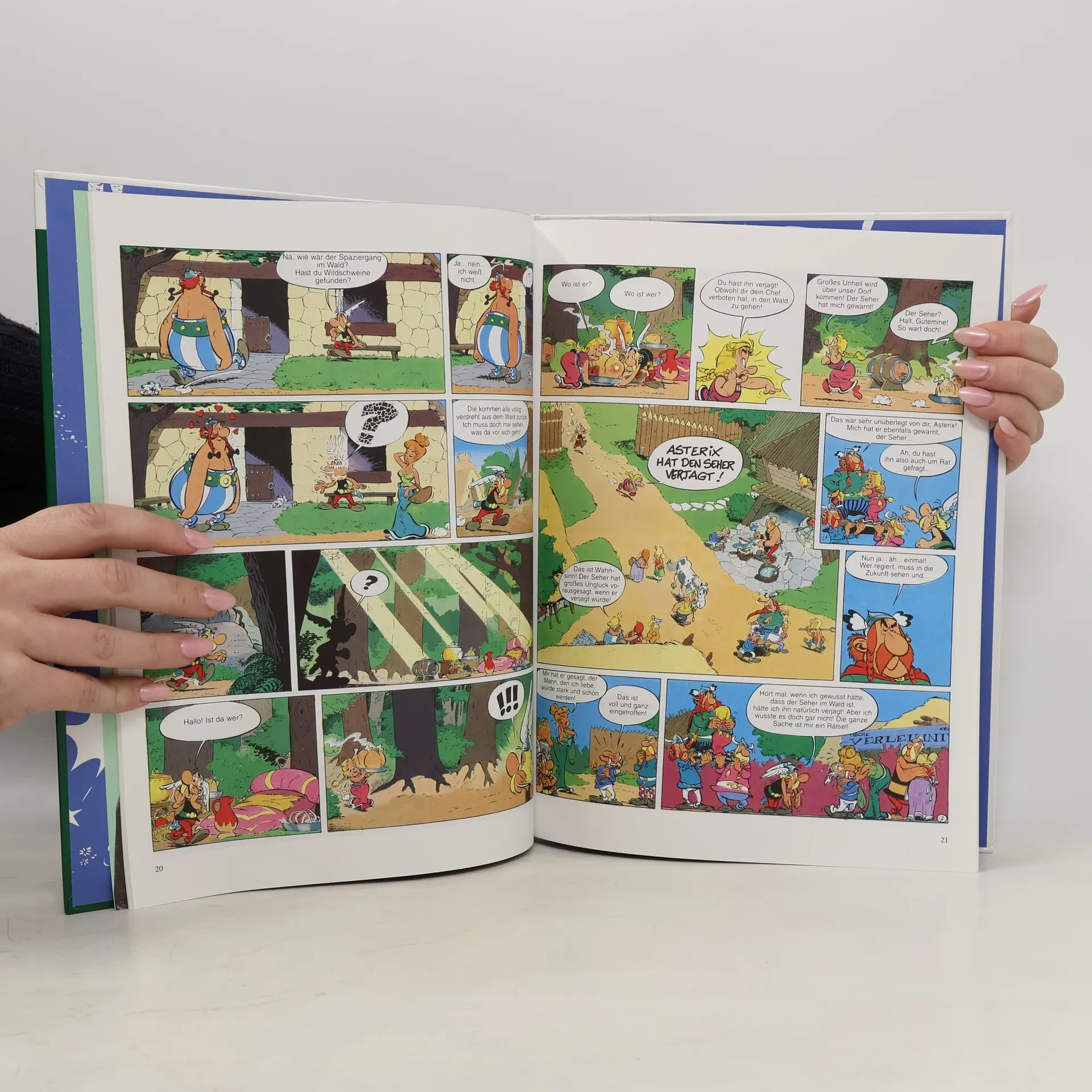 Ein Seher taucht im gallischen Dorf auf und macht sich die Ängste und den Aberglauben der Menschen als Nährboden für seine lausigen Prophezeiungen zunutze. Die liest er aus Wildschweinen, Fischen oder Hühnern genauso ungeniert wie aus Cervisia. Vor allem aber wickelt er mit dieser perfiden Methode die Bewohner des Dorfes einzeln um den Finger. Von Anfang an durchschaut allein Asterix diesen Scharlatan, denn auch die Römer versuchen, sich den Seher zunutze zu machen. Dieser Titel wird im sog. Fixed-Layout-Format angeboten und ist daher nur auf Geräten und Leseprogrammen nutzbar, die die Darstellung von Fixed-Layout-eBooks im epub- oder mobi/KF8-Format unterstützen. Wir empfehlen in jedem Fall die Darstellung auf Tablets und anderen Geräten mit Farbbildschirm