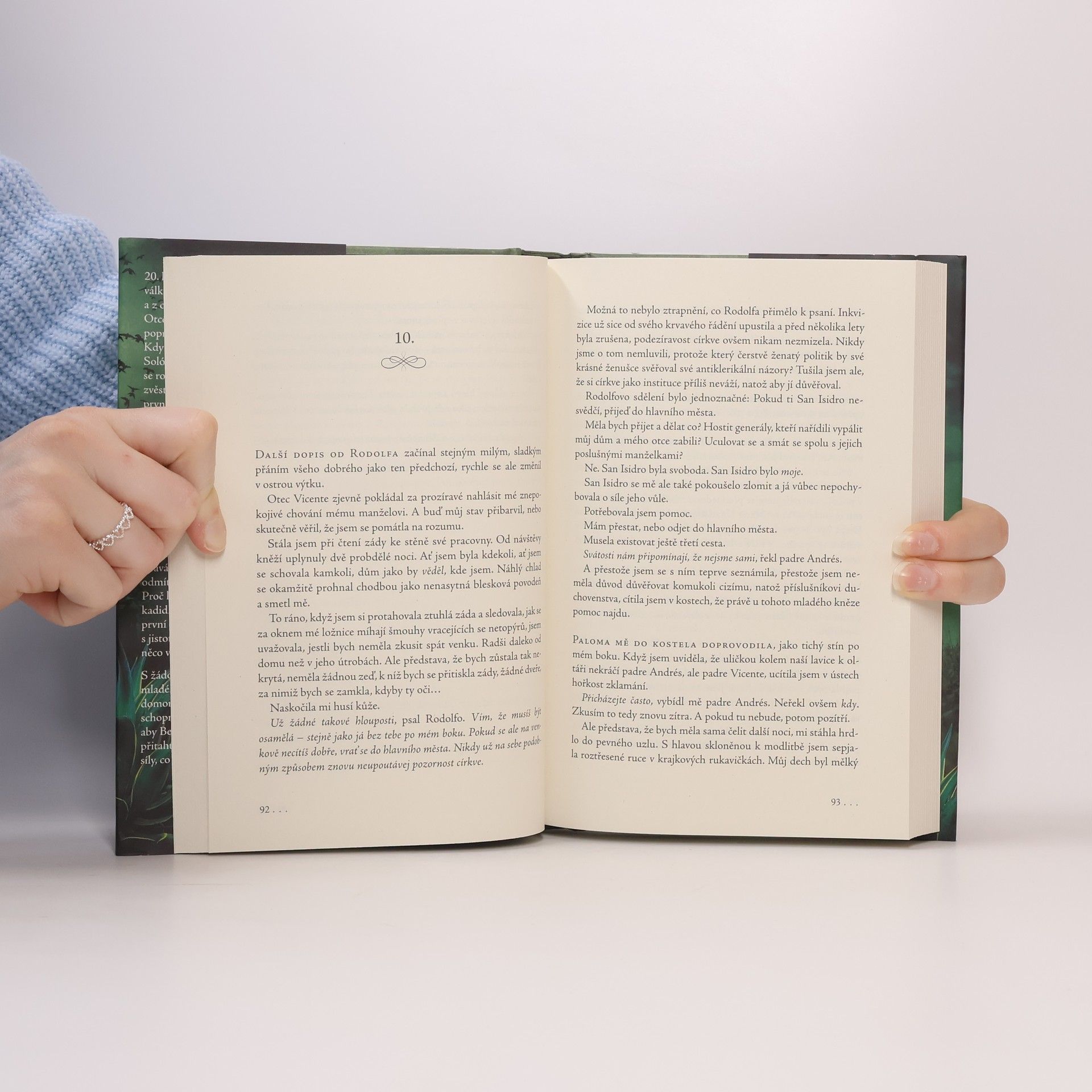 Napínavý román o strašidelném panství uprostřed agávových polí20. léta 19. století. V Mexiku končí válka za nezávislost na Španělsku a z císařství se stává republika. Otce mladé Beatriz během povstání popravili a její rodný dům vypálili. Když ji pak pohledný don Rodolfo Solórzano požádá o ruku, Beatriz se rozhodne, že nebude naslouchat zvěstem o náhlém úmrtí jeho první manželky, a nabídku přijme. Hacienda San Isidro ovšem není bezpečným útočištěm, jaké si představovala.Po Rodolfově odjezdu za prací si Beatriz v pustém domě začne připadat jako v děsivém snu. Nemůže spát. Ruší ji podivné zvuky a živé obrazy. Cítí, že ji na každém kroku něco pronásleduje. Manželova sestra Juana se jejím obavám vysmívá. Proč ale sama odmítá v noci vstoupit do domu? Proč kuchařka zapaluje kopálové kadidlo? A jak skutečně zemřela první doňa Solórzano? Beatriz ví s jistotou jen jedno – s haciendou je něco v nepořádku.S žádostí o pomoc se obrátí na mladého kněze Andrése, kterému jeho domorodá babička předala užitečné schopnosti. Budou však stačit na to, aby Beatriz, která ho nebezpečně přitahuje, ochránil a porazil temné síly, které haciendu zcela ovládly?