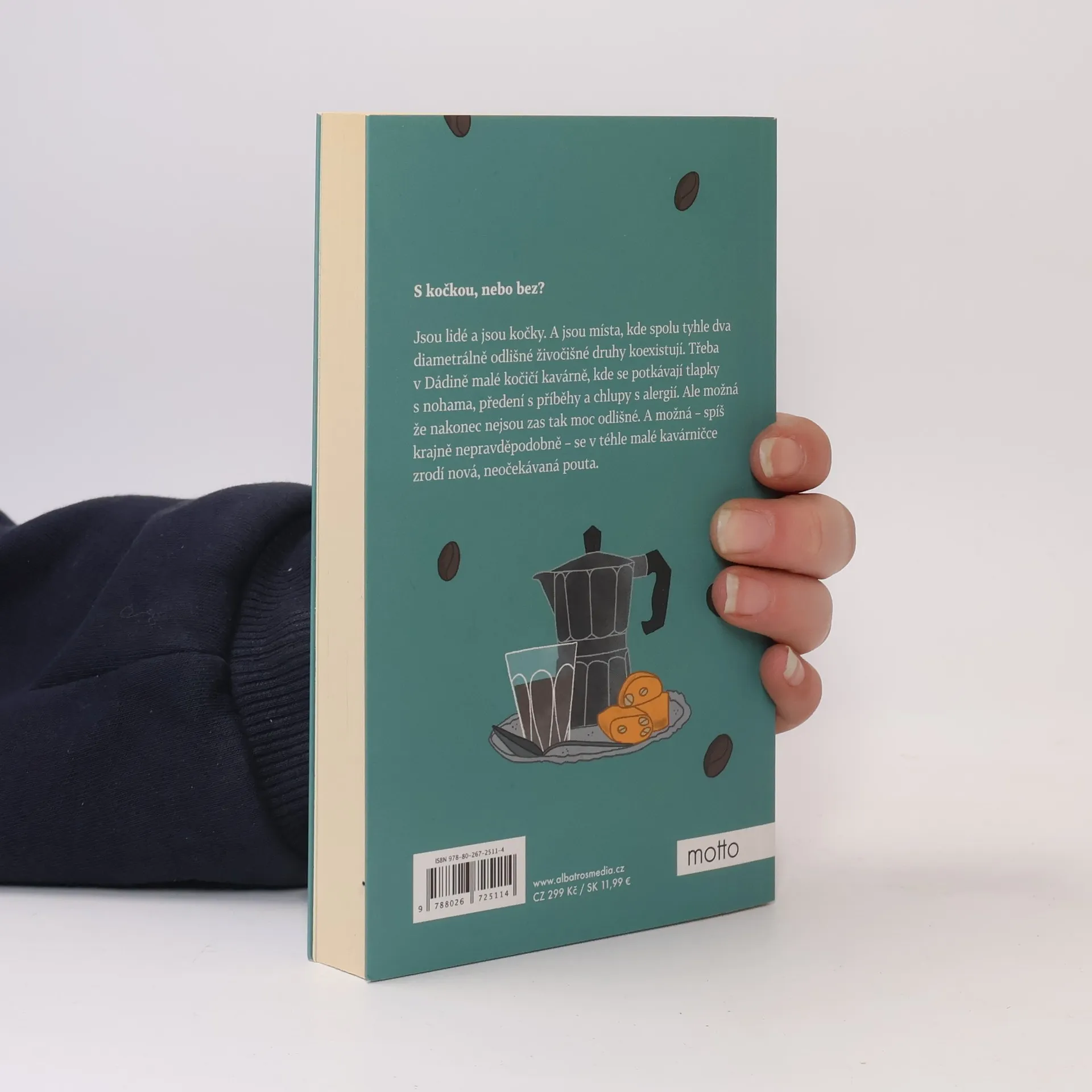 S kočkou, nebo bez?Jsou lidé a jsou kočky. A jsou místa, kde spolu tyhle dva diametrálně odlišné živočišné druhy koexistují. Třeba v Dádině malé kočičí kavárně, kde se potkávají tlapky s nohama, předení s příběhy a chlupy s alergií. Ale možná že nakonec nejsou zas tak moc odlišné. A možná – spíš krajně nepravděpodobně – se v téhle malé kavárničce zrodí nová, neočekávaná pouta.