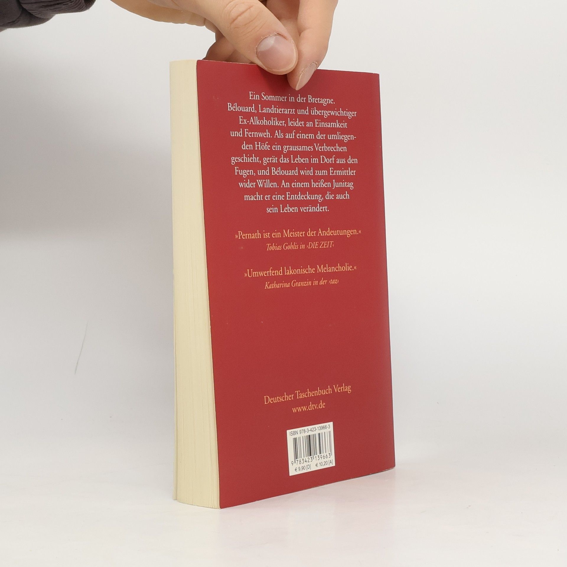 Ein grausamer Mordfall verändert das Leben des einsamen Landtierarztes Monsieur Bélouard in der Nähe von Nantes. Pernath schildert in melancholischem Ton Abgründe, Hass und Gewalt, bleibt dabei jedoch stets menschlich. Tobias Gohlis lobt Pernath als Meister der Andeutungen.