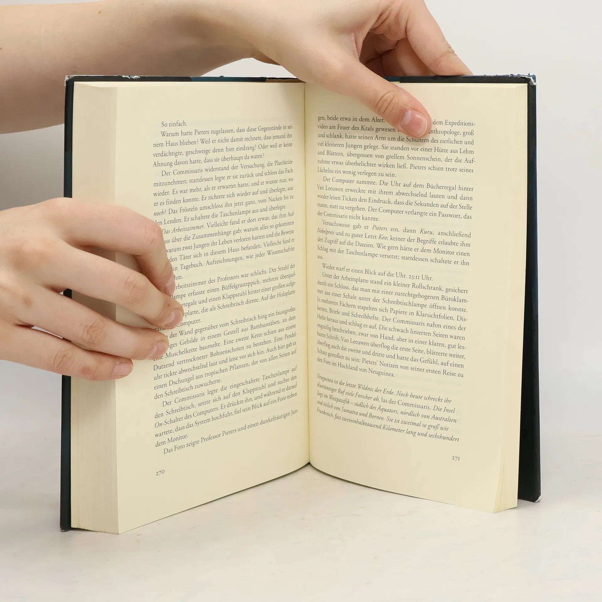 Am Abend des in Holland wie ein Volksfest gefeierten Königinnentages wird in Amsterdam ein zwölfjähriger Junge Opfer eines unheimlichen Mordes. Commissaris Bruno von Leuwen, ohnehin belastet durch den Verfall seiner an einer schweren Krankheit leidenden Frau, nimmt die aussichtslos scheinenden Ermittlungen auf. Doch die Suche nach dem Täter konfrontiert den eigenwilligen Beamten mehr und mehr auch mit einem dunklen Geheimnis seiner eigenen Ehe. Erst als ein zweiter Mord geschieht, führen ihn Spuren zu dem besessenen Anthropologen Josef Pieters, der sein Leben der Erforschung eines aussterbenden Kannibalenstammes in Papua-Neuguinea gewidmet hat. Doch während der Commissaris die Schlinge um den für den Nobelpreis nominierten Wissenschaftler immer enger zusammenzieht, kommen ihm plötzlich Zweifel an den eigenen Beweisen ...