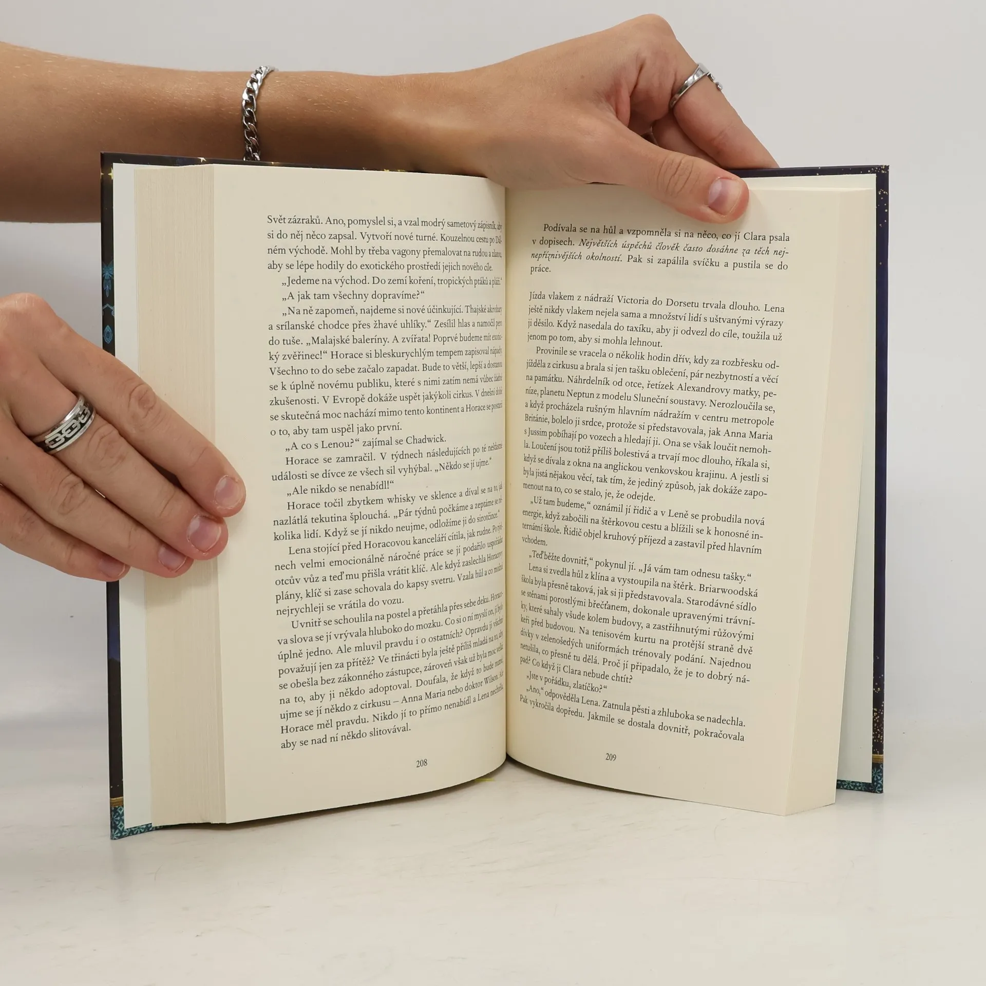 Ve Světě divů, nejvelkolepějším evropském kočovném cirkusu, je každý okamžik plný kouzel a nic není takové, jak se zdá – zejména pro lidi, kteří tu žijí. Lena si zde nikdy nenašla své místo, a to ani jako dcera výjimečného hlavního iluzionisty Thea. Chytrá a zvídavá Lena touží po skutečném kouzlu vědy a medicíny, a to navzdory otcově přehnané ochraně a omezením, která jí svět klade kvůli jejímu postižení. Její život nabere vzrušující směr, když zachrání Alexandra, sirotka s vlastními tajemstvími a záhadnou minulostí. Během let, kdy se jejich přátelství prohlubuje a Alexandre se začne učit iluzionistickému umění, se kolem nich stupňuje druhá světová válka. Když jsou Theo a Alexandre najati k práci v Terezíně, nacisty zřízeném modelovém městečku pro Židy, Lena se musí vydat vlastní cestou a odvážit se uvěřit v nemožné – v sebe sama. Kniha Cirkusový vlak potěší fanoušky knih Noční cirkus či Voda pro slony.