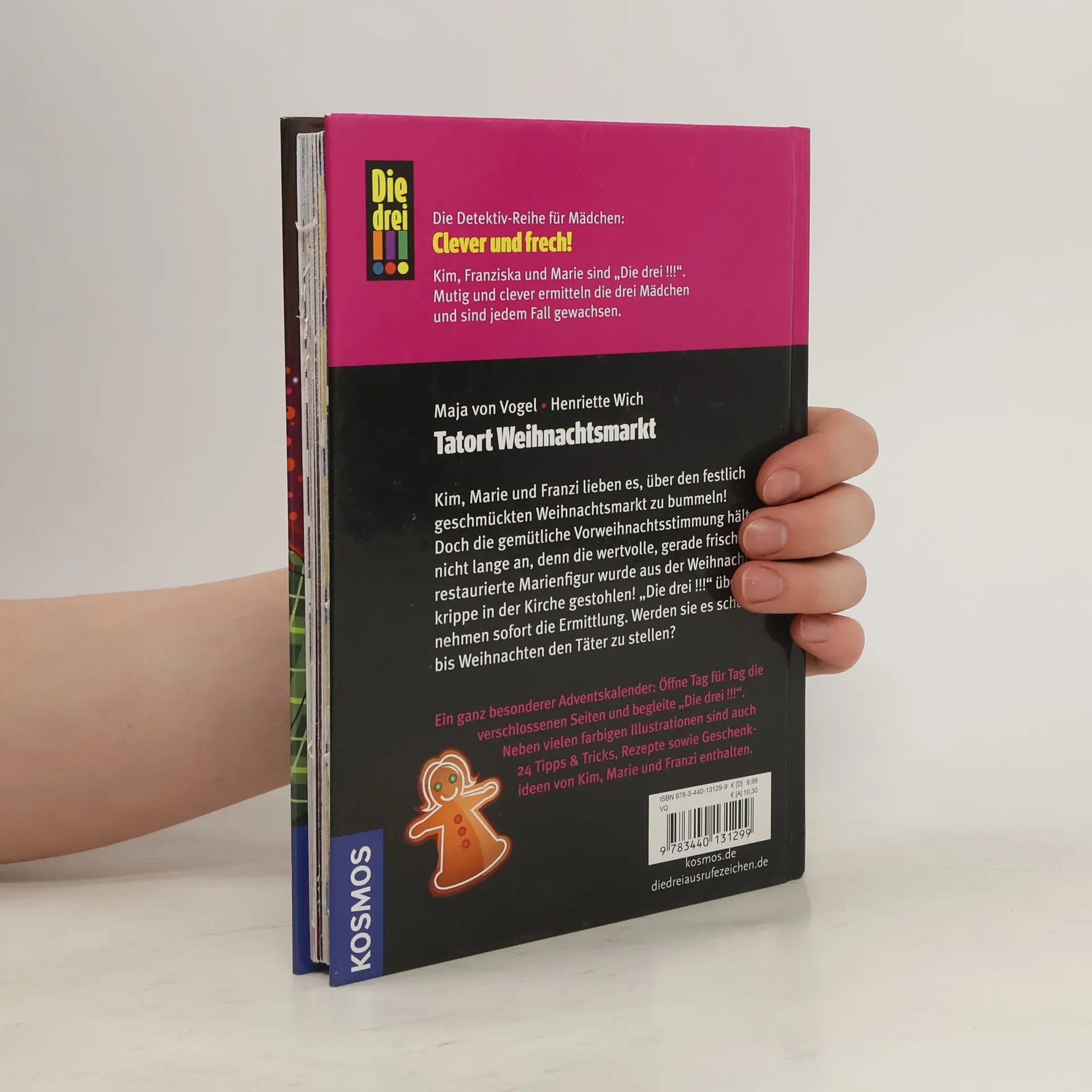 Kim, Franziska und Marie sind "Die drei !!!". Mutig und clever ermitteln die drei Mädchen und sind jedem Fall gewachsen! Kim, Marie und Franzi genießen die Vorweihnachtszeit: Bummel über den Weihnachtsmarkt, Plätzchen backen, Adventstee ... Doch dann verschwindet plötzlich die wertvolle Marienfigur aus der Weihnachtskrippe in der Kirche! Ein vorweihnachtlicher Fall wartet auf die drei Detektivinnen ... Neben der spannenden Detektivarbeit müssen Kim, Franziska und Marie auch immer wieder das Abenteuer "Freundschaft" bestehen. Es ist nämlich gar nicht so leicht, drei völlig verschiedene Meinungen unter einen Hut zu bringen. "Die drei !!!" stellen sich der Herausforderung und sind gemeinsam ein unschlagbares Team!