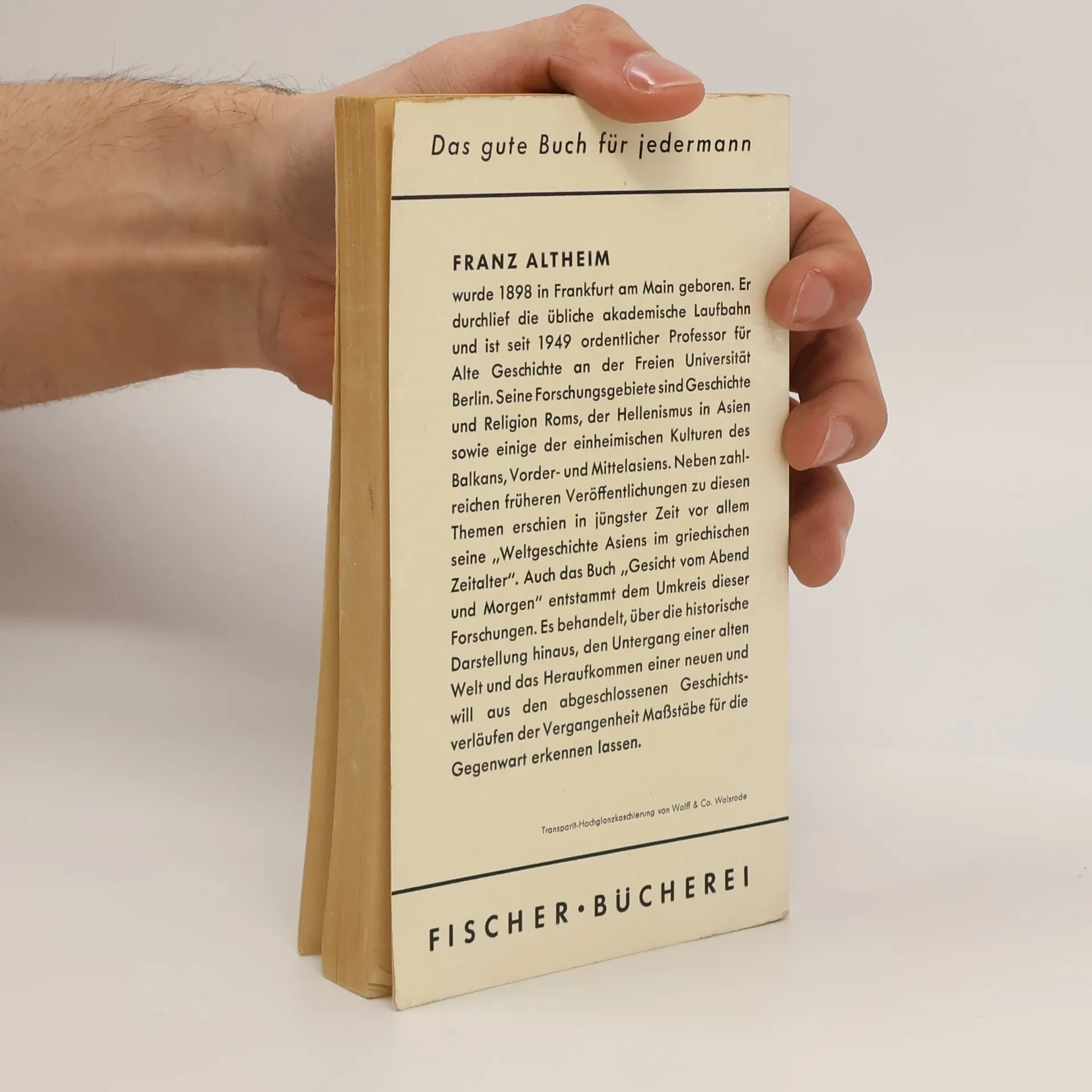 Gesicht vom Abend und Morgen, Franz Altheim