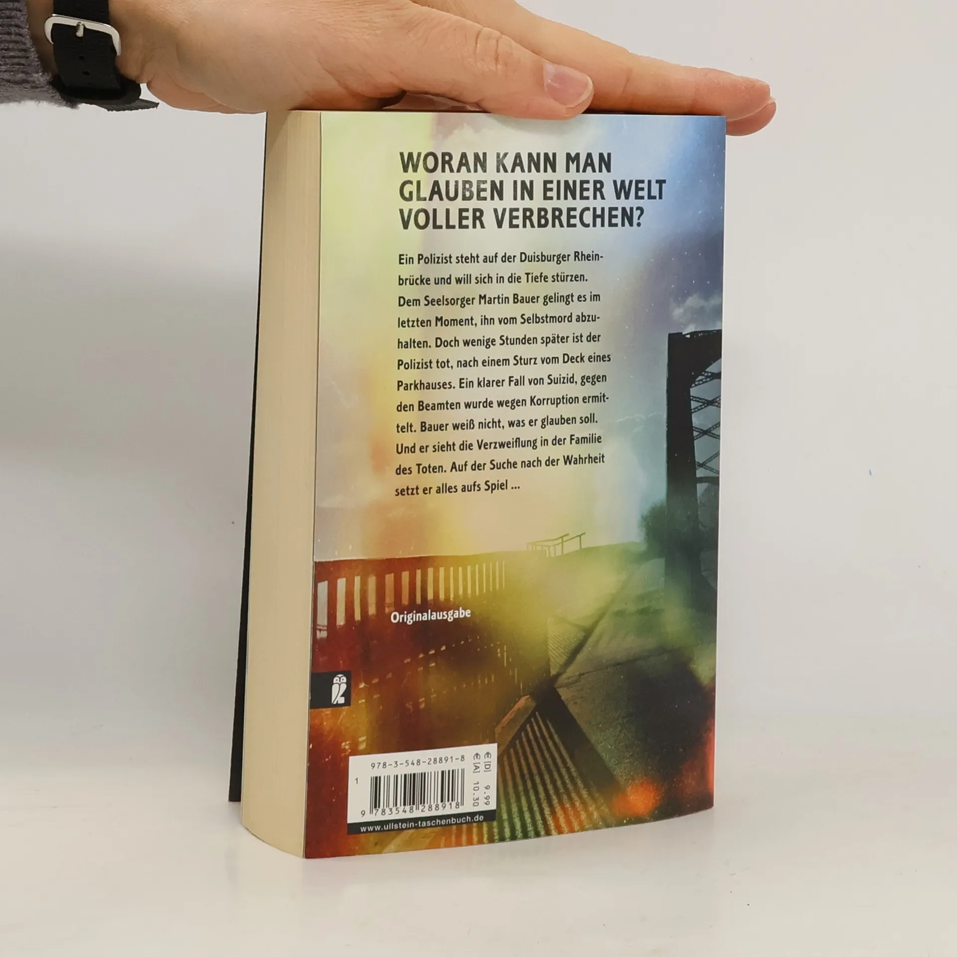 Woran kann man glauben in einer Welt voller Verbrechen? Ein Polizist steht auf der Duisburger Rheinbrücke und will sich in die Tiefe stürzen. Der Seelsorger Martin Bauer soll ihn daran hindern. Er klettert einfach über das Geländer und springt selbst. Überrumpelt springt der Beamte hinterher, um Bauer zu retten. Gemeinsam können sie sich aus dem Wasser ziehen. Bauer hat hoch gepokert, aber gewonnen. Doch wenige Stunden später ist der Polizist tot, nach einem Sturz vom Deck eines Parkhauses. Ein klarer Fall von Selbstmord, gegen den Beamten wurde wegen Korruption ermittelt. Bauer weiß nicht, was er glauben soll. Und er sieht die Verzweiflung in der Familie des Toten. Auf der Suche nach der Wahrheit setzt er alles aufs Spiel ...