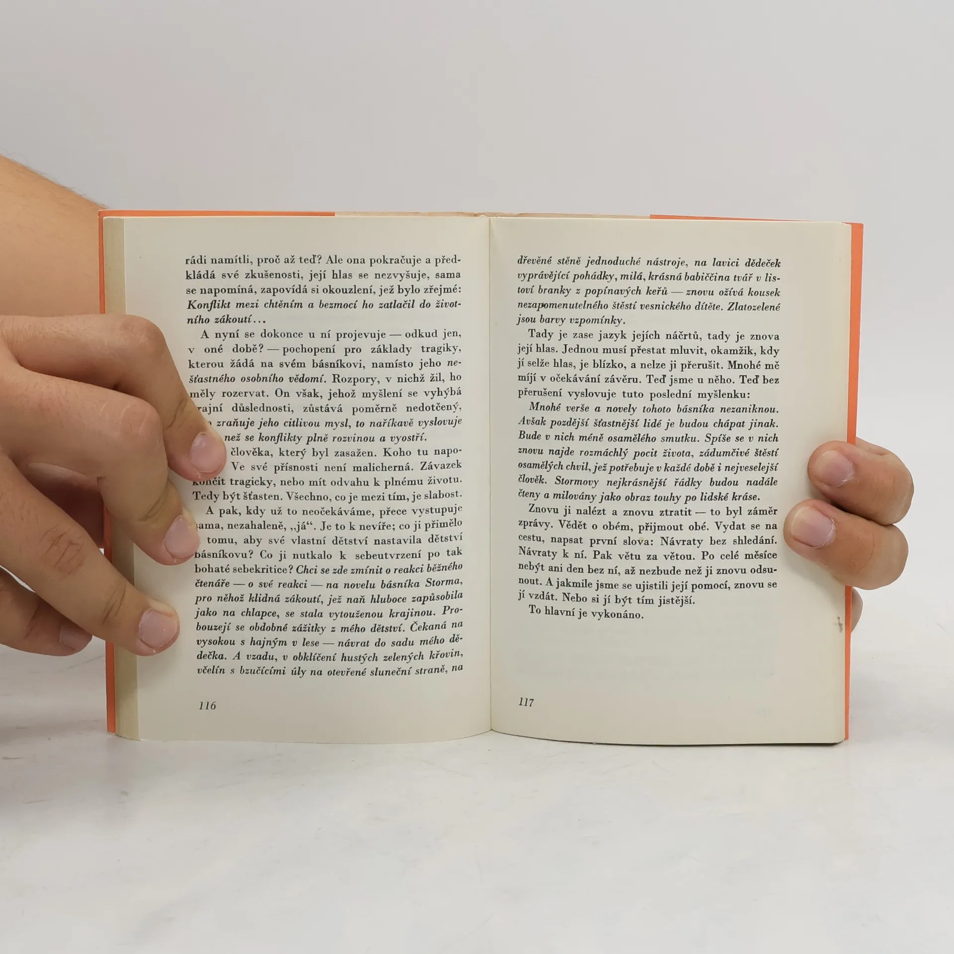 Román představuje pětatřicetiletou ženu, jež až dosud v životě hledala sama sebe a ve chvíli neodvratné smrti nalézá zázračnou cenu nejprostších věcí života, základních lidských vztahů, které ji k němu poutají.