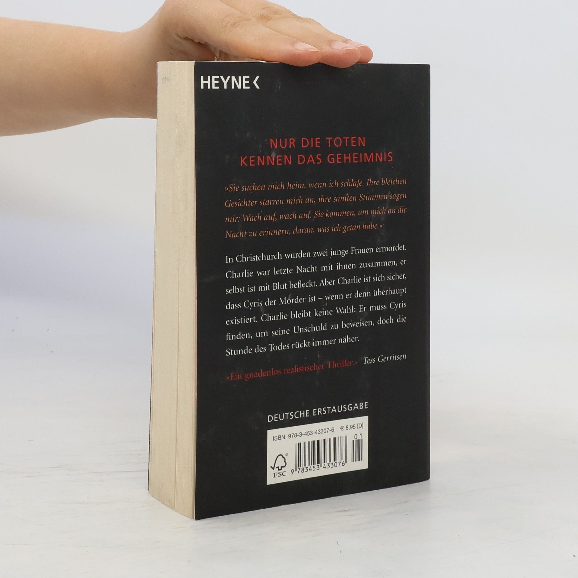 Nur die Toten kennen das Geheimnis „Sie suchen mich heim, wenn ich schlafe. Ihre bleichen Gesichter starren mich an, ihre sanften Stimmen sagen mir: Wach auf, wach auf. Sie kommen, um mich an die Nacht zu erinnern, daran, was ich getan habe.“In Christchurch wurden zwei junge Frauen ermordet. Charlie war letzte Nacht mit ihnen zusammen, er selbst ist mit Blut befleckt. Aber Charlie ist sich sicher, dass Cyris der Mörder ist – wenn er denn überhaupt existiert. Ihm bleibt keine Wahl: Er muss Cyris finden, um seine Unschuld zu beweisen, doch die Stunde des Todes rückt immer näher.
