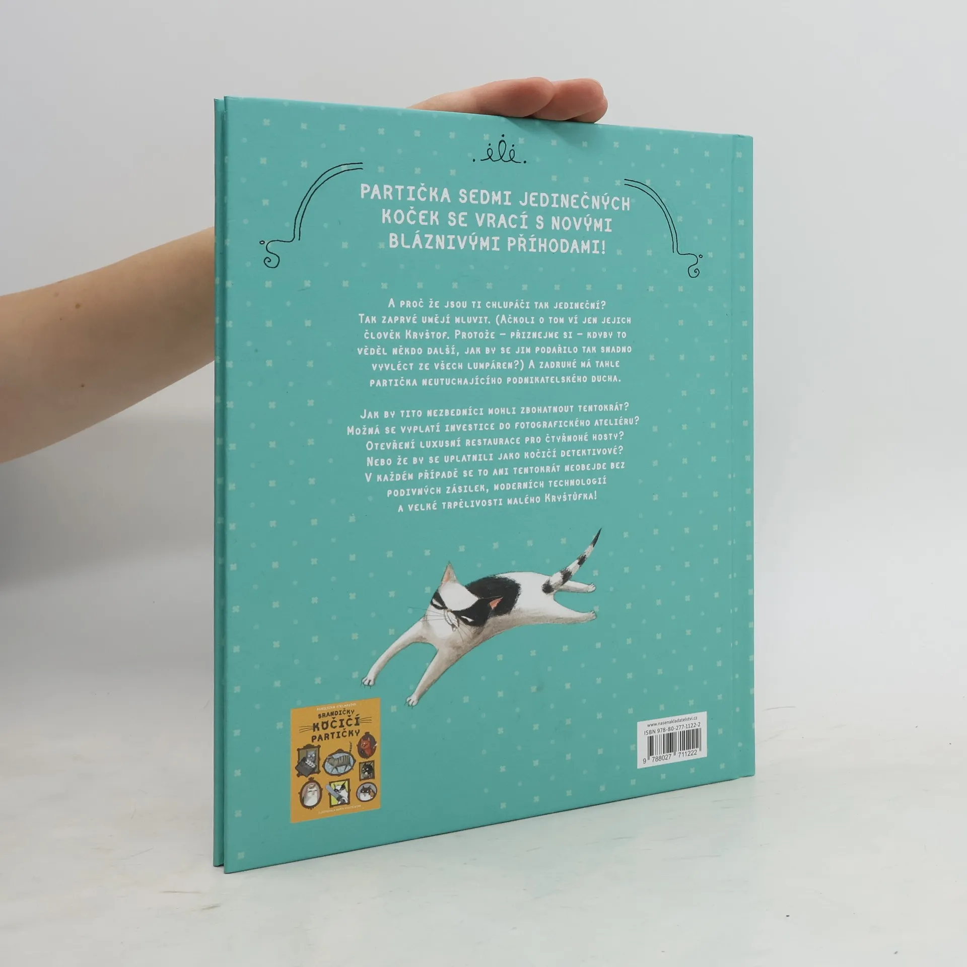 Partička sedmi nezkrotných jedinečných koček se vrací s novými bláznivými příhodami!A proč že jsou to chlupáči tak jedineční? Tak zaprvé umějí mluvit. (Ačkoli o tom ví jedině jejich člověk Krištof. Protože přiznejme si to na rovinu – kdyby to věděl i někdo další, jak by se jim podařilo tak snadno se vyvléct ze všech lumpáren?) A zadruhé má tahle partička neutuchajícího podnikatelského ducha.Jak by tito nezbedníci mohli zbohatnout tentokrát? Možná by se vyplatila investice do fotografického ateliéru? Otevření luxusní restaurace pro čtyřnohé hosty? Nebo že by se uplatnili jako kočičí detektivové? V každém případě se to ani tentokrát neobejde bez podivných zásilek, moderních technologií a velké trpělivosti malého Krištůfka!Úžasně ilustrovaná knížka, plná veselých příběhů zasazených do současnosti, přináší dětem známé a blízké zvířecí hrdiny.