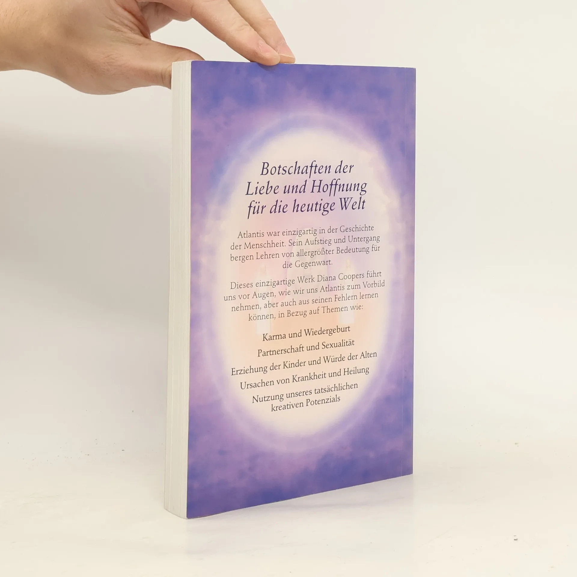 Botschaften der Liebe und Hoffnung für unsere Welt Entdecke Atlantis ist ein wahrhaft außergewöhnliches Werk, das von Diana Cooper auf medialem Wege empfangen wurde. Und mit den Atlantis-Weisheitskarten kann man das spirituelle Wissen und das Lebensgefühl der Atlanter intuitiv-spielerisch erfahren. Buch und Karten sind auch gemeinsam im Set erhältlich. Die spirituellen, kulturellen und sozialen Errungenschaften von Atlantis, sein Aufstieg und Fall enthalten Lehren von allergrößter Bedeutung für unsere Gegenwart, die ebenso reich an Chancen wie an Bedrohungen ist. Diana Cooper zeigt ganz praktisch, wie wir uns die Atlanter zum Vorbild nehmen und aus ihren Fehlern lernen können, bei Themen wie: • Karma und Wiedergeburt• Beziehungen und Sexualität• Erziehung der Kinder und Würde der Alten• Wahre Ursachen von Krankheit und Heilung• Nutzung unseres kreativen Potenzials Die Atlantis-Weisheitskarten sind einzusetzen wie Tarotkarten: um die Zukunft zu erkennen oder um sich selbst und seine Mitmenschen besser zu verstehen. Wunderschön gemalte, stimmungsvolle Motive mit aussagestarken, präzisen Texten.