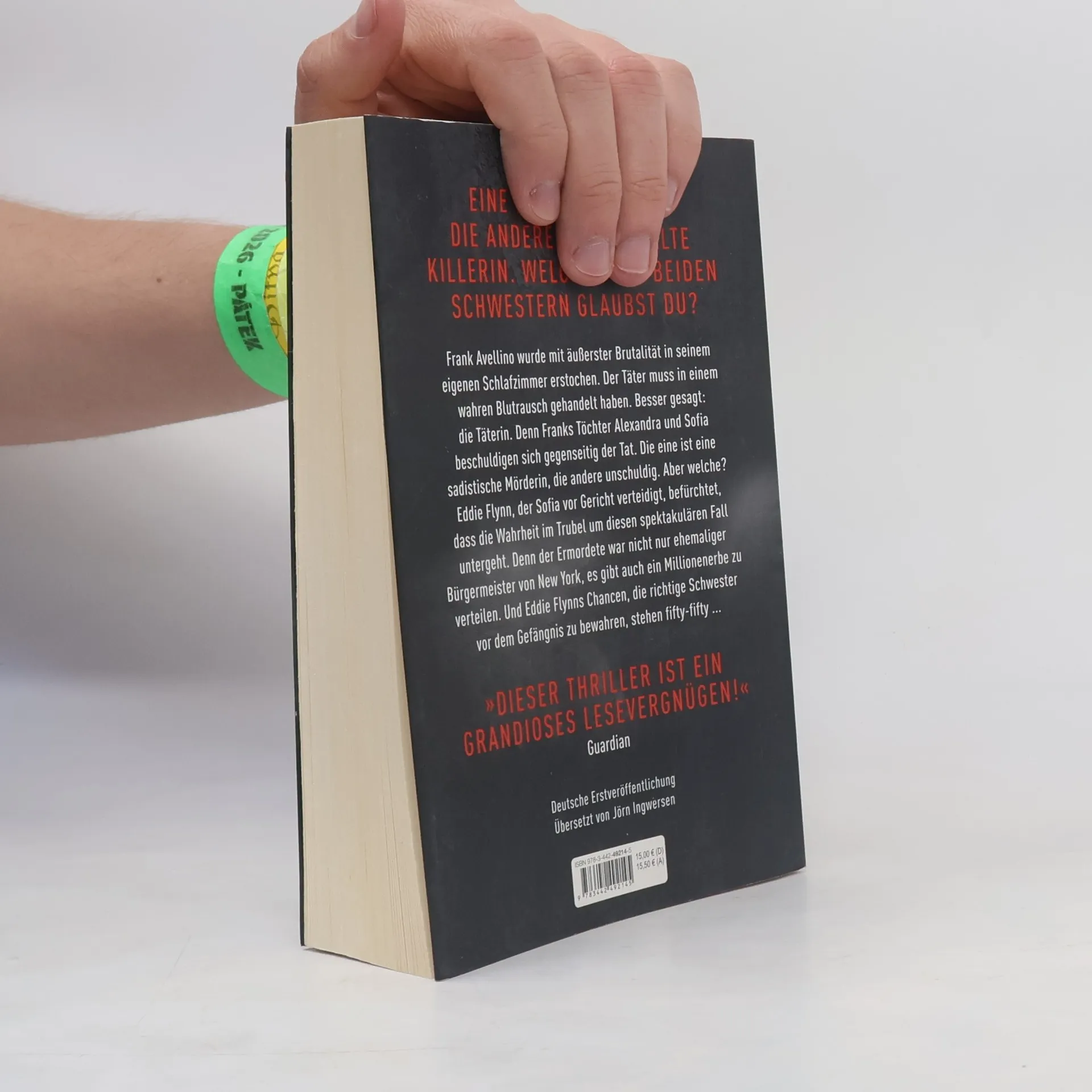 Eine ist unschuldig. Die andere eine eiskalte Killerin. Welcher der beiden Schwestern glaubst du? Frank Avellino wurde mit äußerster Brutalität in seinem eigenen Schlafzimmer erstochen, der Täter muss in einem wahren Blutrausch gehandelt haben. Besser gesagt: die Täterin. Denn Franks Töchter Alexandra und Sofia beschuldigen sich gegenseitig der Tat. Die eine ist eine sadistische Mörderin, die andere unschuldig. Aber welche? Sowohl Eddie Flynn, der Sofia vor Gericht verteidigt, als auch Alexandras junge Anwältin Kate Brooks befürchten, dass die Wahrheit im Trubel um diesen spektakulären Fall untergeht. Denn der Ermordete war nicht nur ehemaliger Bürgermeister von New York, es gibt auch ein Millionenerbe zu verteilen. Und Eddie Flynns Chancen, die richtige Schwester vor dem Gefängnis zu bewahren, stehen fifty-fifty ...