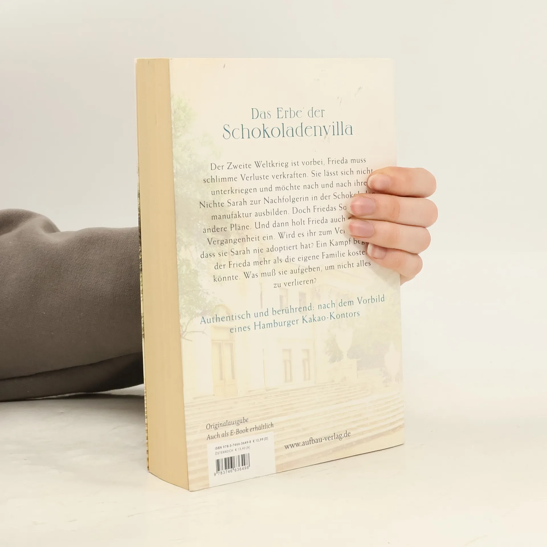 Das Erbe der Schokoladenvilla. Der Zweite Weltkrieg ist vorbei, Frieda muss schlimme Verluste verkraften. Sie lässt sich nicht unterkriegen und möchte nach und nach ihre Nichte Sarah zur Nachfolgerin in der Schokoladenmanufaktur ausbilden. Doch Friedas Sohn hat andere Pläne. Und dann holt Frieda auch noch die Vergangenheit ein. Wird es ihr zum Verhängnis, dass sie Sarah nie adoptiert hat? Ein Kampf beginnt, der Frieda mehr als die eigene Familie kosten könnte. Kann sie diesen Kampf gewinnen? Authentisch und berührend: nach dem Vorbild eines Hamburger Kakao-Kontors