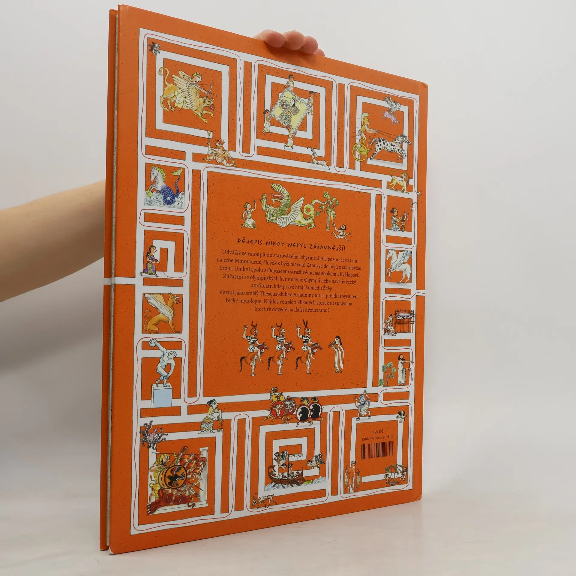Velkoformátová kniha ve stylu Map představuje dětem nejznámější řecké mýty, antickou kulturu a historii. Vezmi klubko Ariadniny niti a projdi labyrintem řecké mytologie! Najdeš ve spleti klikatých stezek tu správnou, která tě dovede na další dvoustranu? Cestou se seznamíš s řeckými bohy a bohyněmi, bájnými hrdiny i fantastickými stvořeními. Potkáš se s Heraklem a Argonauty, Minotaurem a Kyklopy a poznáš Sisyfa, Odyssea i krásnou Helenu. Navštívíš olympiádu, řecké divadlo nebo athénskou Akropoli. Nádherně ilustrovaná kniha plná detailů tě vmžiku přenese do Řecka před tisíci lety. Neuvěřitelně propracované labyrinty uznávaného mladého polského grafika a ilustrátora Jana Bajtlika vytvářejí působivé obrazy plné detailů, v nichž se každý rád ztratí, jen aby objevil něco nového. Oblíbenou zábavu nejen pro děti — hledání v bludišti — doplňují krátké texty v závěrečné části, které představují nejdůležitější postavy, pojmy a události, s nimiž se děti v bludišti starověkého Řecka setkají.