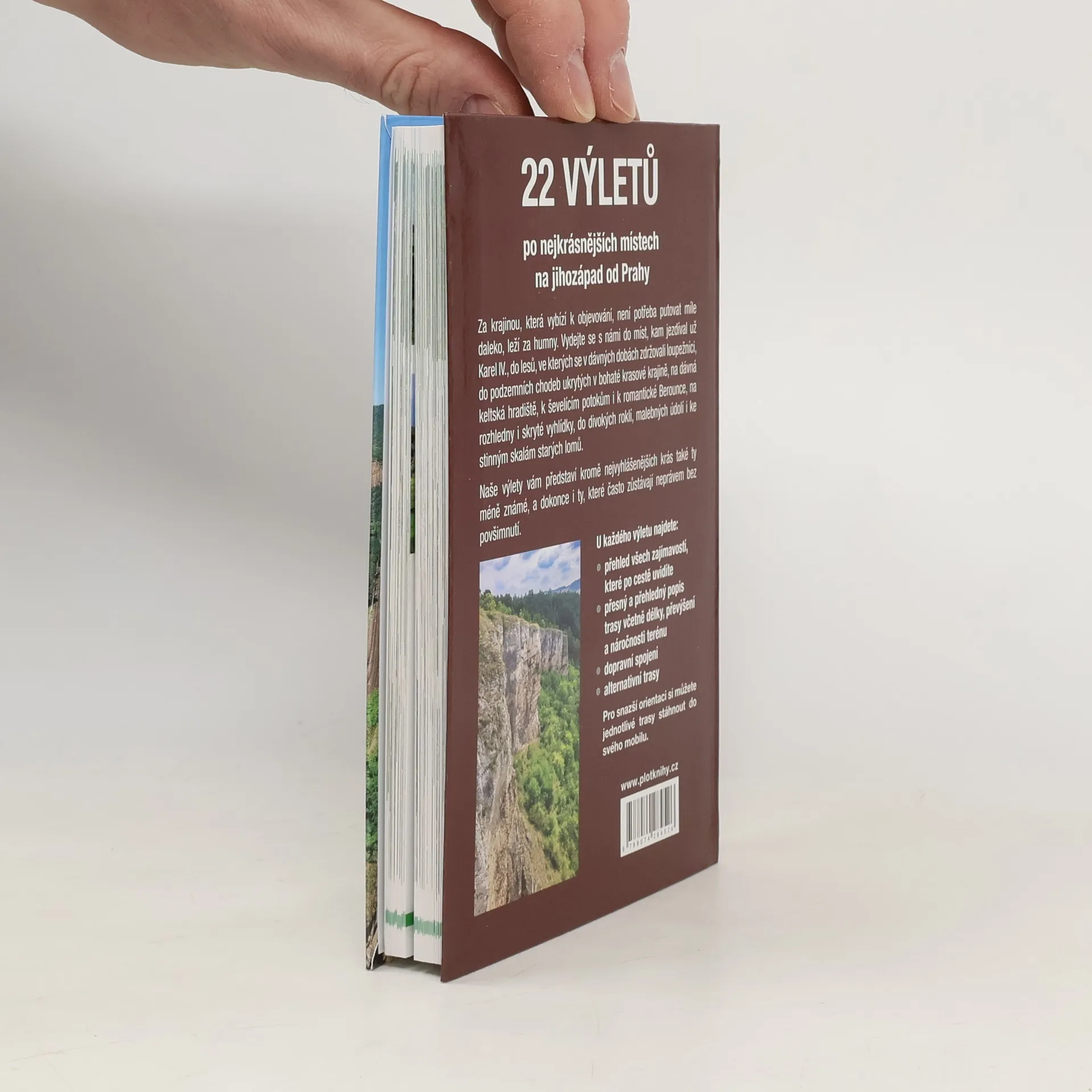 Podtitul: 22 výletů po nejkrásnějších místech na jihozápad od Prahy. Za krajinou, která vybízí k objevování, není potřeba putovat míle daleko, leží za humny. Vydejte se s námi do míst, kam jezdíval už Karel IV., do lesů, ve kterých se v dávných dobách zdržovali loupežníci, do podzemních chodeb ukrytých v bohaté krasové krajině, na dávná keltská hradiště, k ševelícím potokům i k romantické Berounce, na rozhledny i skryté vyhlídky, do divokých roklí, malebných údolí i ke stinným skalám starých lomů. Naše výlety vám představí kromě nejvyhlášenějších krás také ty méně známé, a dokonce i ty, které často zůstávají neprávem bez povšimnutí. U každého výletu najdete: přehled všech zajímavostí, které po cestě uvidíte přesný a přehledný popis trasy včetně délky, převýšení a náročnosti terénu dopravní spojení alternativní trasy
