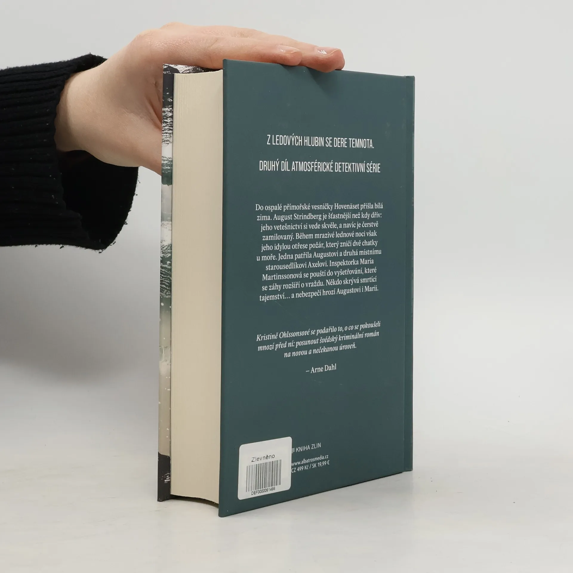 Z ledových hlubin se dere temnota. Druhý díl atmosférické detektivní série. Do ospalé přímořské vesničky Hovenäset přišla bílá zima. August Strindberg je šťastnější než kdy dřív: jeho vetešnictví si vede skvěle, a navíc je čerstvě zamilovaný. Během mrazivé lednové noci však jeho idylou otřese požár, který zničí dvě chatky u moře. Jedna patřila Augustovi a druhá místnímu starousedlíkovi Axelovi. Inspektorka Maria Martinssonová se pouští do vyšetřování, které se záhy rozšíří o vraždu. Někdo skrývá smrtící tajemství… a nebezpečí hrozí Augustovi i Marii.