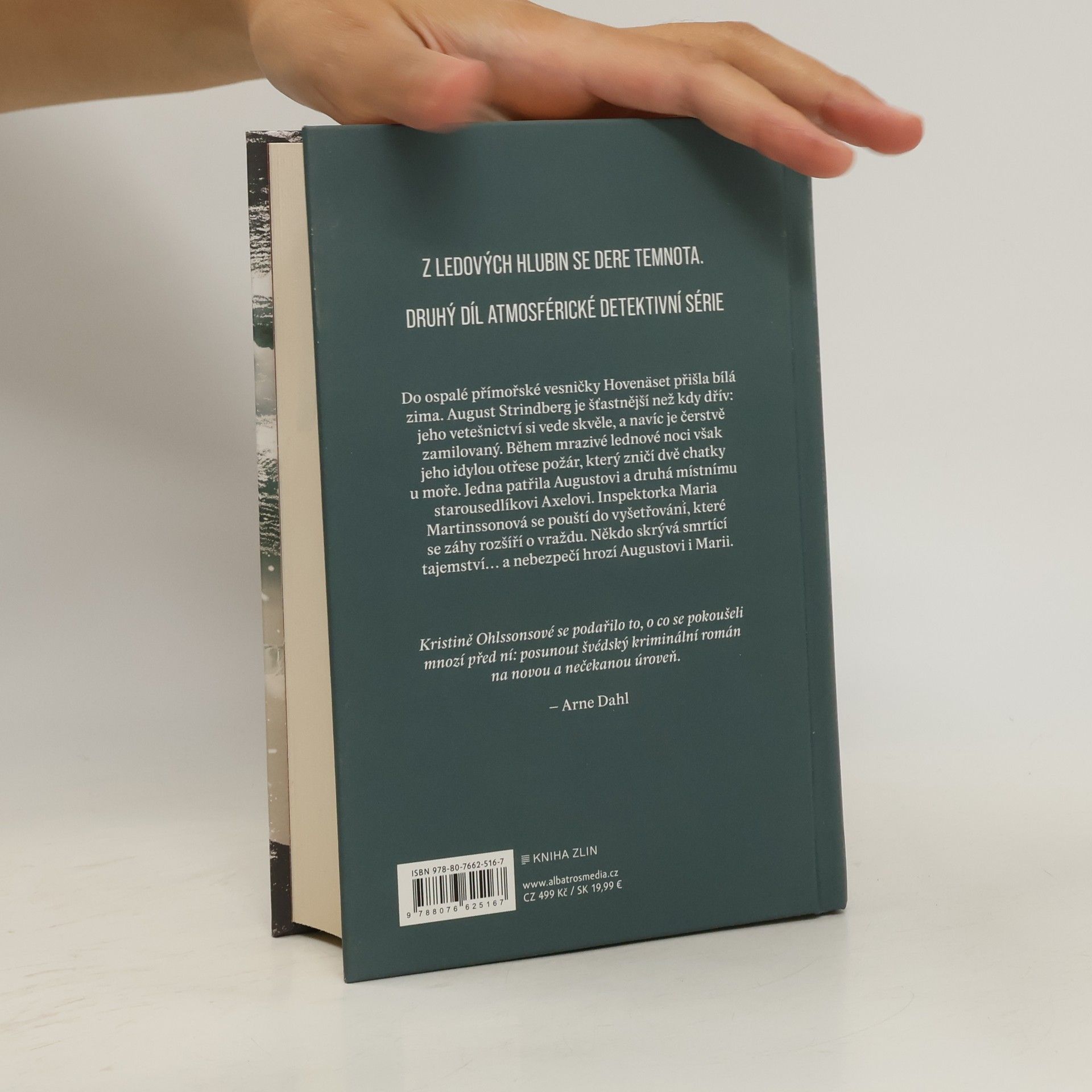 Z ledových hlubin se dere temnota. Druhý díl atmosférické detektivní série. Do ospalé přímořské vesničky Hovenäset přišla bílá zima. August Strindberg je šťastnější než kdy dřív: jeho vetešnictví si vede skvěle, a navíc je čerstvě zamilovaný. Během mrazivé lednové noci však jeho idylou otřese požár, který zničí dvě chatky u moře. Jedna patřila Augustovi a druhá místnímu starousedlíkovi Axelovi. Inspektorka Maria Martinssonová se pouští do vyšetřování, které se záhy rozšíří o vraždu. Někdo skrývá smrtící tajemství… a nebezpečí hrozí Augustovi i Marii.