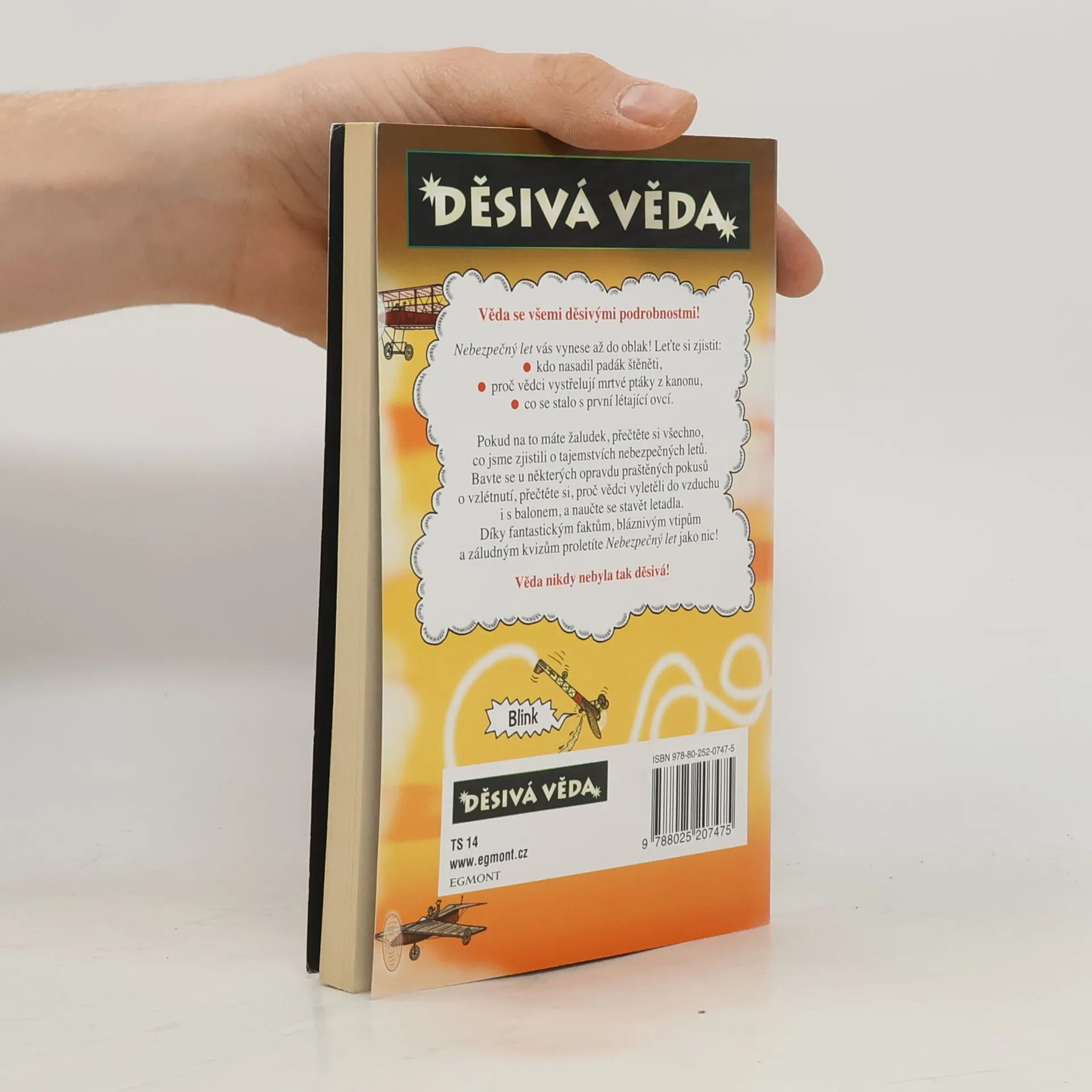 Nebezpečný let vás vynese až do oblak! Leťte si zjistit, proč vědci vystřelují mrtvé ptáky z kanonu nebo co se stalo s první létající ovcí? Pokud na to máte žaludek, přečtěte si všechno, co jsme zjistili o tajemstvích nebezpečných letů. Bavte se u některých opravdu praštěných pokusů o vzlétnutí, přečtěte si, proč vědci vyletěli do vzduchu i s balonem, a naučte se stavět letadla. Uvidíte, že díky fantastickým faktům, bláznivým vtipům a záludným kvizům přečtete Nebezpečný let jedním dechem! Věda nikdy nebyla tak děsivá!