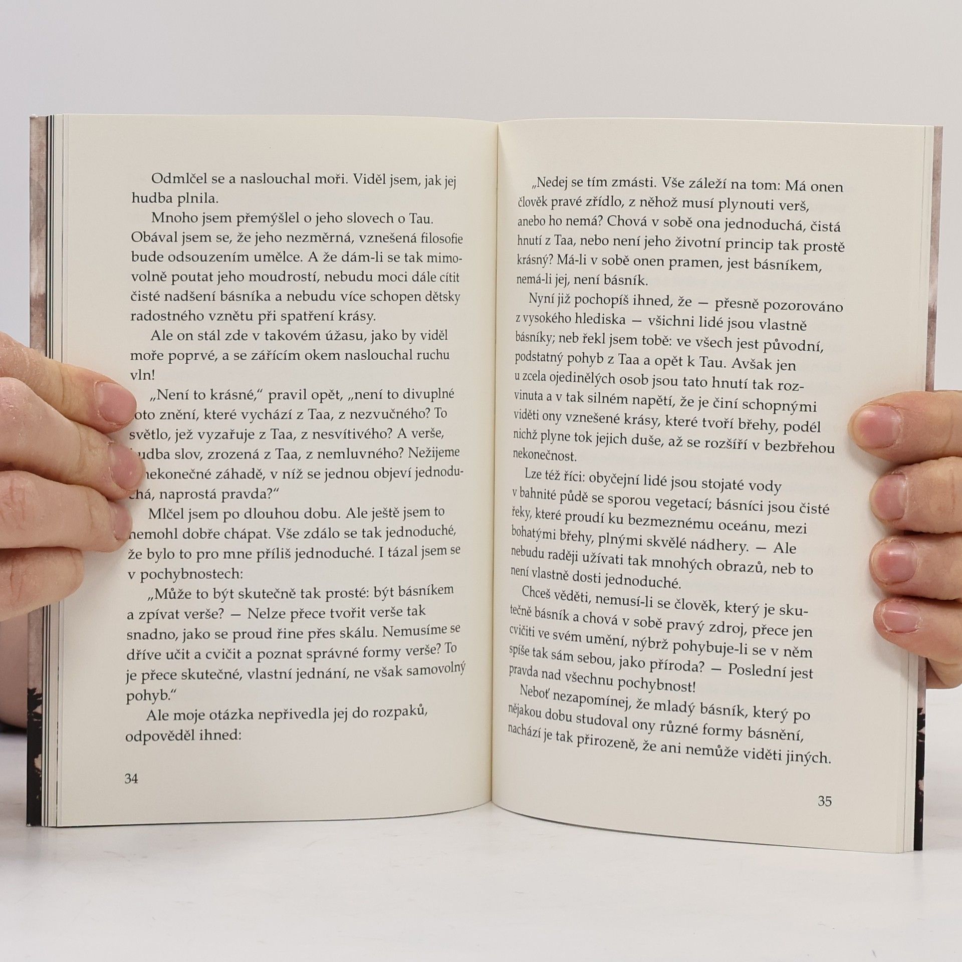 Nově ilustrovaná reedice dnes již téměř zapomenutého skvostu, který inicioval vstup na duchovní cestu řadě hledačům a to nejen v okruhu žáků Fráni Drtikola, kde se šířila formou samizdatu. Ve staré Číně učil nejvznešenější náboženské filosofii mudrc Lao-c’. Kniha „Tao te ťing“ (Kniha o Božství a cnosti), kterou napsal kolem roku 600 př. n. l., je jedním z nejobdivuhodnějších filosofických děl posledních tisíciletí, které vyniká nad jiná také svou jednoduchostí výrazu. Názory i city myslitele, který se s pravým pochopením pohroužil do hlubin a krás Lao-c’ova spisu a který jeho rázu přizpůsobil své představy o Bohu, umění a lásce, jsou vylíčeny v rámci následujícího prostého vypravování. Mnohý pozorný čtenář nalezne v této knize jasné rozhledy a širé obzory, které dosud bezvýsledně hledal. Kniha je rozdělena na tři rozhovory. V prvním učí poznávati žáka všade a ve všem "Tao", jakožto prapříčinu všeho "bytí". V dalších rozhovorech, "Umění" a "Láska" učí se poznávati žák harmonii, která vládne celým vesmírem i vlastní nedostatky, které mu překáží ve sjednocení se s "Taem".