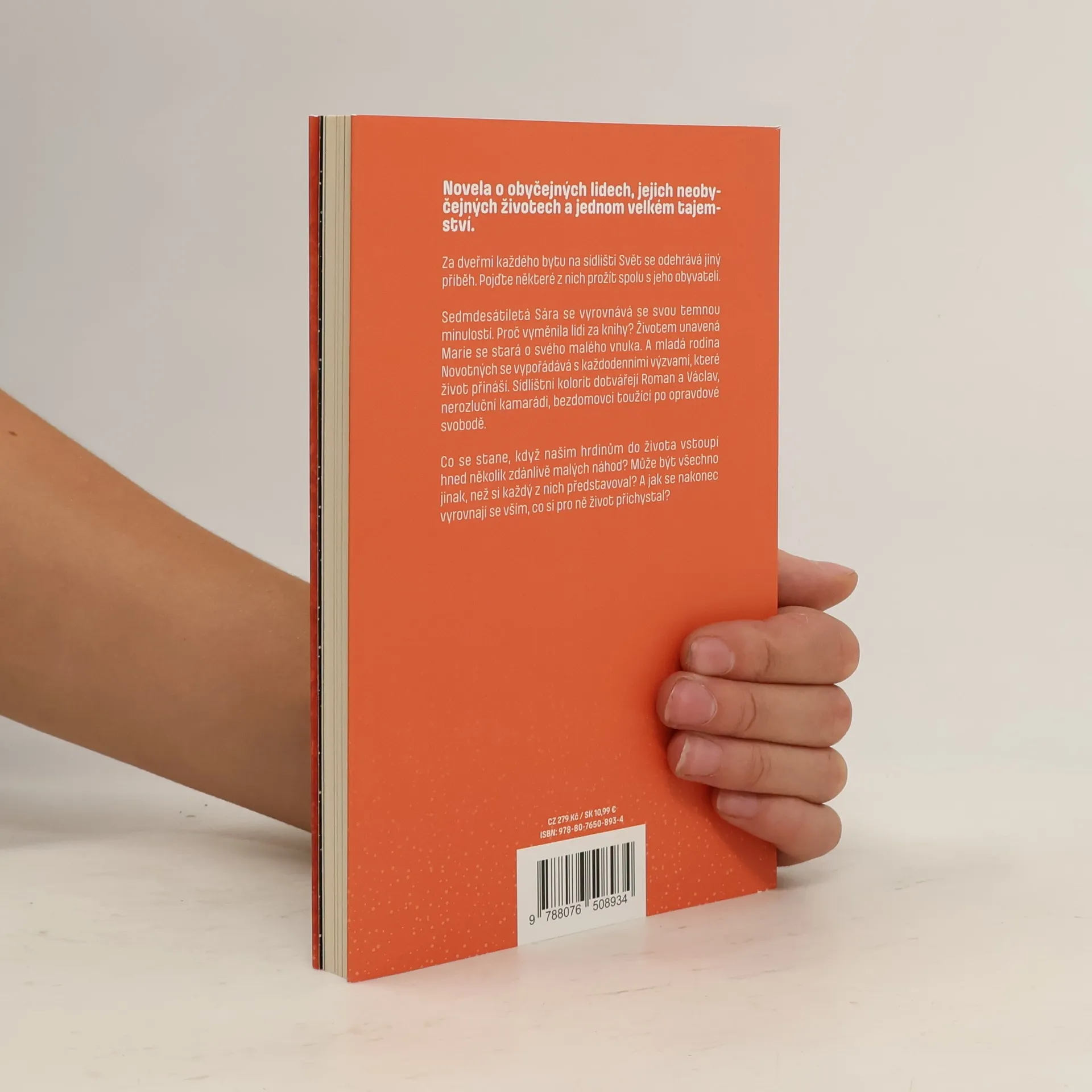 Příběh o obyčejných lidech, jejich neobyčejných životech a jednom velkém tajemství. Za dveřmi každého bytu na sídlišti Svět se odehrává jiný příběh. Pojďte některé z nich prožít spolu s jejich obyvateli. Sedmdesátiletá Sára se vyrovnává se svou temnou minulostí. Proč vyměnila lidi za knihy? Životem unavená Marie se stará o svého malého vnuka. A mladá rodina Novotných se vypořádává s každodenními výzvami, které život přináší. Sídlištní kolorit dotvářejí dva bezdomovci a nerozluční kamarádi Roman a Václav toužící po opravdové svobodě. Co se stane, když našim hrdinům do života vstoupí hned několik zdánlivě malých náhod? Může být všechno jinak, než si každý z nich představoval? A jak se nakonec vyrovnají se vším, co si pro ně život přichystal?