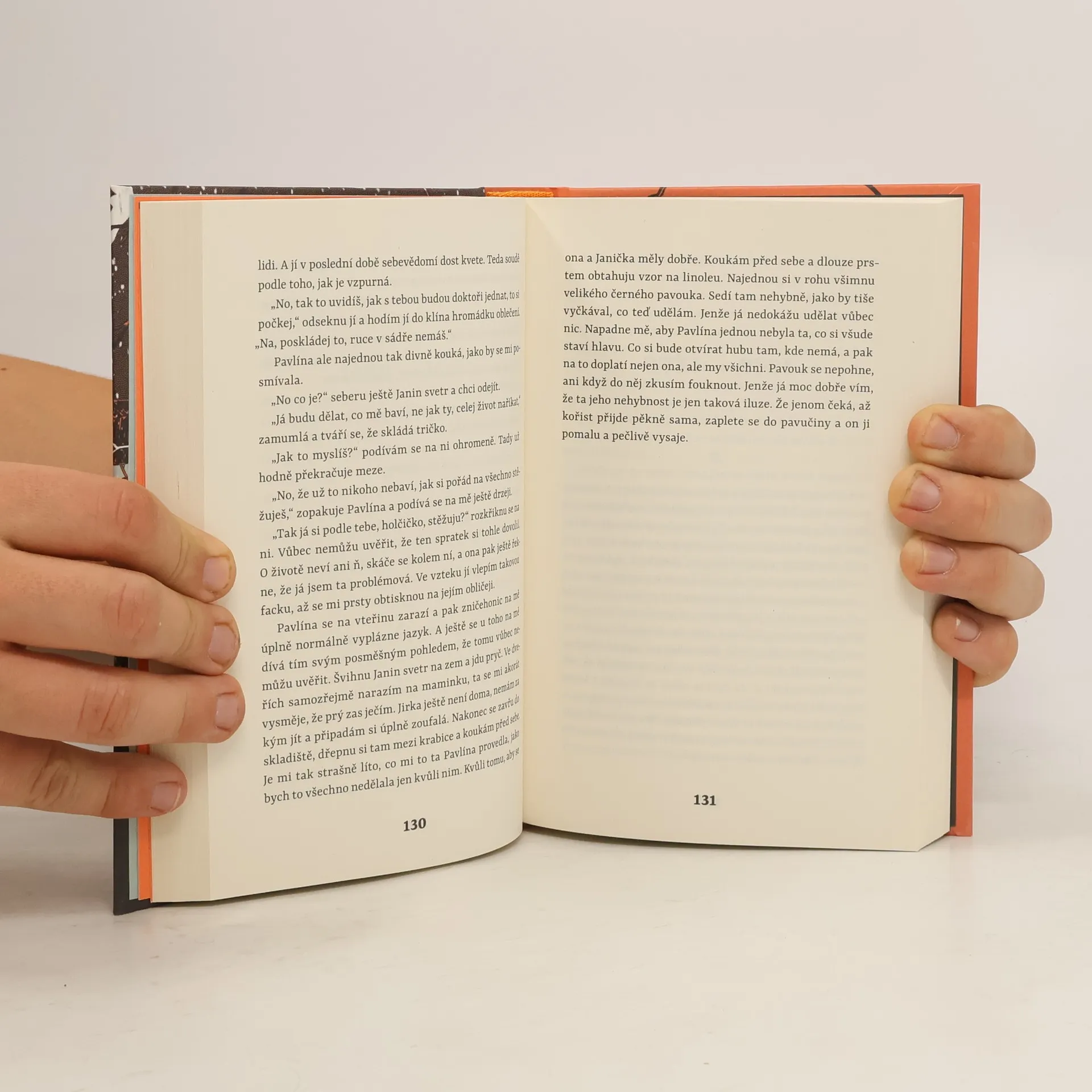 Román o dozrávání v přelomové době.Obyčejná rodina, obyčejná vesnice. Dvě dcery ve školním věku, rodiče s obyčejnými profesemi. Také prarodiče, všichni tak trochu natěsno v poslepovaném, ale jinak úplně obyčejném domě. A kolem stejně tak obyčejný, nehybný čas. Jenže zdání tu klame. Tiše se naplňuje chvíle, kdy starý režim dozrává k náhlému rozpadu. Pavlína, ústřední vypravěčka této vícehlasé prózy, svým dětským srdcem sdílí euforické iluze rodičů o jiném, lepším životě a promítá je na čisté stěny svých tajných přání a tužeb. Ty se ovšem netýkají jen tušené svobody a jejích lákadel, ale i vztahů. Zvlášť když dívka postupně začíná vnímat, že její rodina, v níž to „každý s každým myslí tak nějak dobře“, je jako pláň zarostlá křovisky neporozumění, komplexů a někdy i agresí. Chuť urvat si svůj ždibec štěstí a z toho plynoucí pokušení vykonávat moc je silnější než náročná cesta respektu a empatie. Na svět kolem i uvnitř jako by sedala veliká černá můra. Pavlína už dávno není školačka, ale pořád se jí nedaří vstoupit do dospělého života bez neustálého klopýtání. Může vůbec člověk změnit a opustit svůj malý svět? Zmizí snad tíha s milosrdnou tmou? Anebo naopak s příchodem nějaké větší záře?