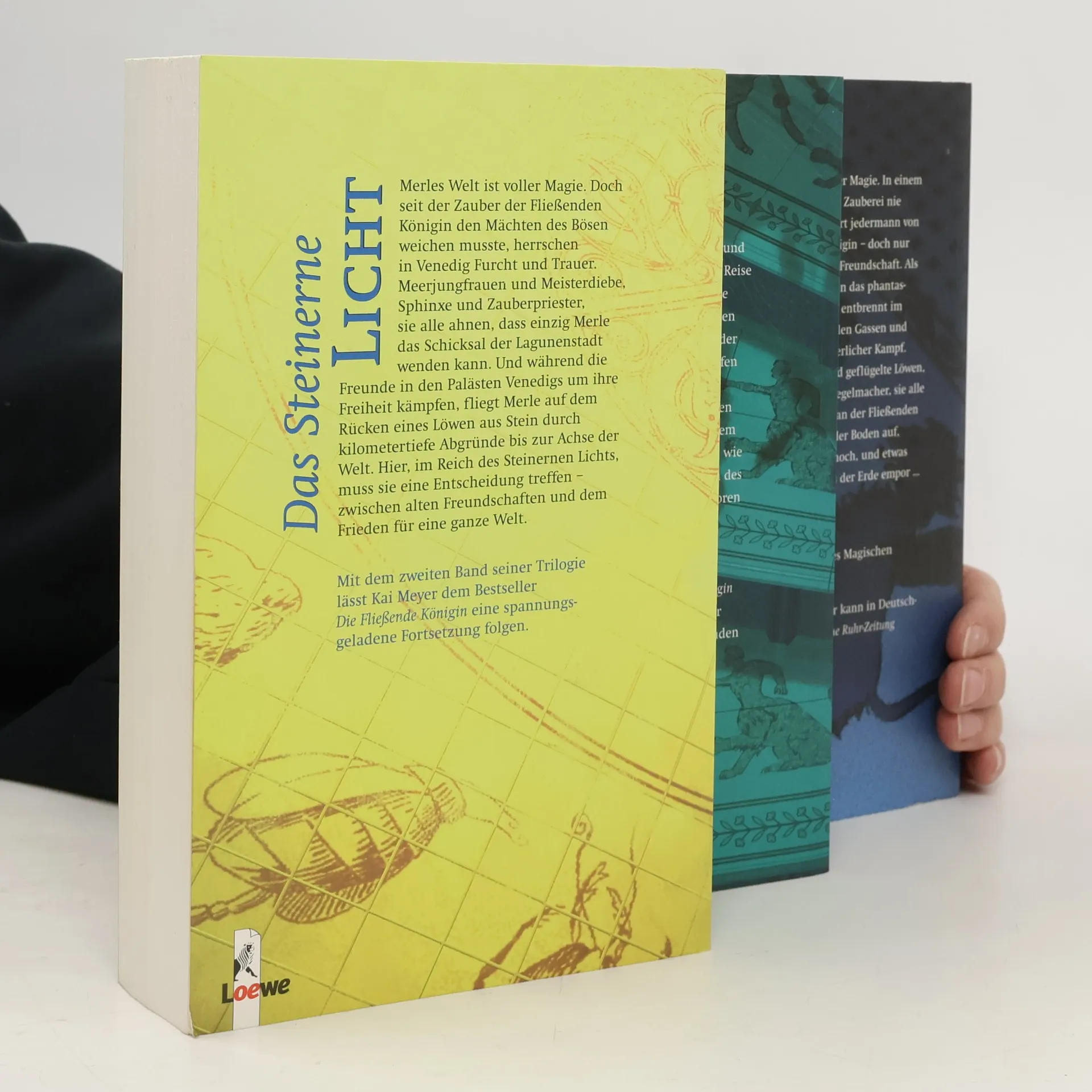 Die Trilogie erzählt von Merles Aufbruch und der Flucht aus dem belagerten Venedig sowie von der vergeblichen Suche nach Hilfe im Reich des Steinernen Lichts und entführt uns schließlich bis ins Herz des Ägyptischen Imperiums, wo es zum alles entscheidenden letzten Kampf kommt. Der Schuber enthält die komplette Trilogie: Die Fließende Königin, Das Steinerne Licht, Das Gläserne Wort.