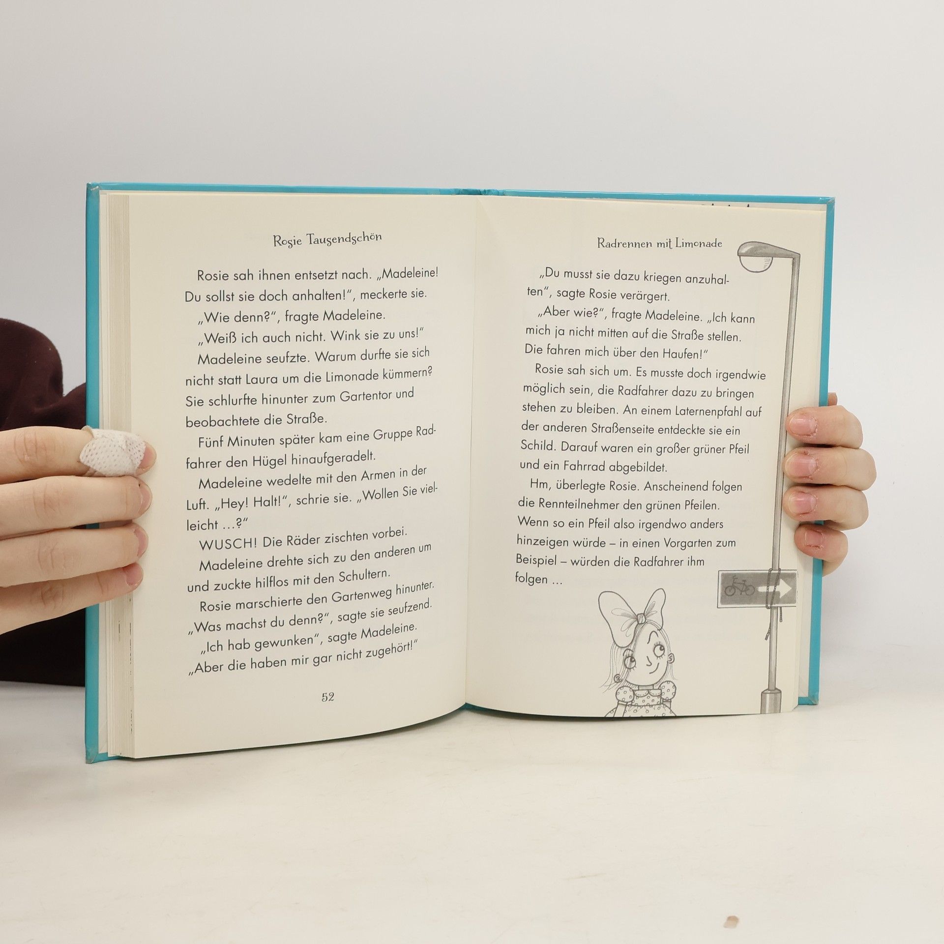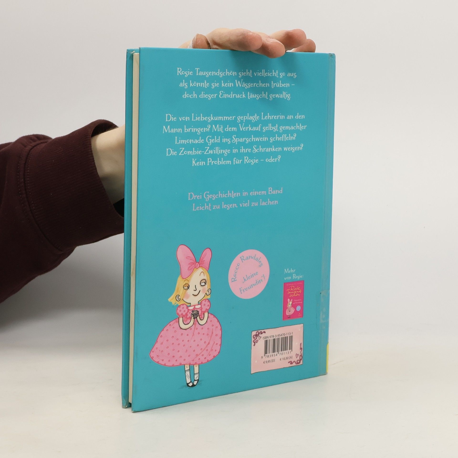 Rosie Tausendschöns Verwandtschaft zu „Rocco Randale“ lässt sich kaum leugnen. Wie Rocco hat sie fast immer nur das Beste im Sinn … bis die Dinge irgendwie ungewollt aus dem Ruder laufen. Das passiert auch in diesem Band wieder – ganze drei Mal! Etwa wenn sie gemeinsam mit ihren Freundinnen versucht, die scheinbar unter Liebeskummer leidende Klassenlehrerin zu verkuppeln, mit unlauteren Wettbewerbsmethoden Limonade an den Mann und Geld in ihr Sparschwein bringt oder sich auf dem Schulweg mit den „Scheußlichen Schwestern“ anlegt. Die weibliche Antwort auf „Rocco Randale“! ]