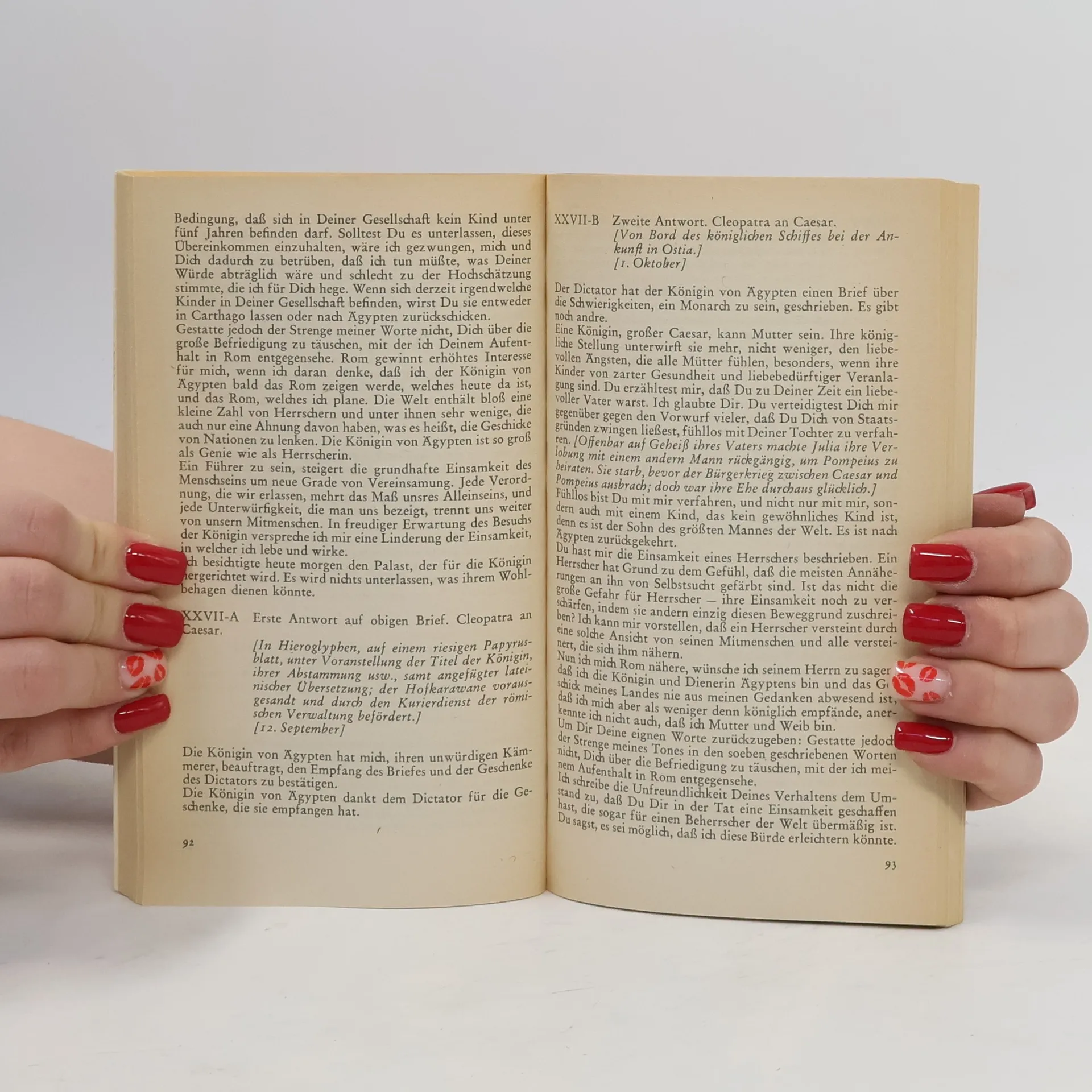Nicht gefunden, erfunden worden sind, zweitausend Jahre nach Caesars Tod, die Dokumente dieses ›historischen‹ Romans, der, nach Wort und Willen des Autors, 'eine Fantasie über gewisse Ereignisse und Personen aus den letzten Tagen der Römischen Republik' ist. In vier ›Büchern‹, jedes zeitlich früher beginnend und später endend, breitet Thornton Wilder seine fiktiven Fundstücke aus; Staats- und Liebesbriefe, Gesandtschafts- und Spitzelberichte, Tagebuchblätter, Mauerinschriften, Protokolle und Pamphlete. Wie Scherben eines Hohlspiegels reflektieren die Archivalien das gesellschaftliche Leben in seiner Mischung aus Klatsch, Klugheit, Witz und Weisheit, Cilaube und Aberglaube. Im Brennpunkt dieser Spiegelungen steht Caesar, der Diktator, in der Darstellung Wilders ein vornehm-menschlicher, unter der Einsamkeit seines Amtes leidender Herrscher. Das letzte Dokument des Romans ist nicht erdacht: es ist der kommentarlos wiedergegebene Be-richt des Sueton über Caesars Ermordung an den 'Iden des März'. Das erzählerische Hauptwerk Thornton Wilders: Antike ohne den Staub des Musealen, als Hintergrund eines zeitlosen Lebensgefühls.