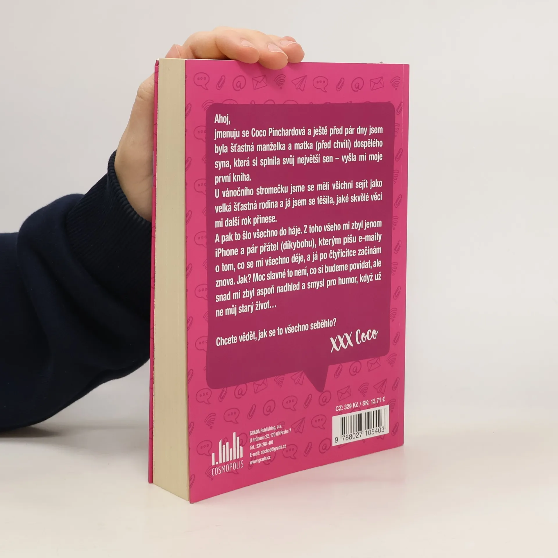 Seznamte se s Coco Pinchardovou, představitelkou nové rom-com série od Roberta Bryndzy! Jaké to je, když po čtyřicítce začínáte úplně znovu? Je to prdel… Coco Pinchardová byla až do vánočních svátků šťastná manželka a matka (před chvílí) dospělého syna, která si splnila svůj největší sen – vyšla jí první kniha.U vánočního stromečku se měla sejít celá velká šťastná rodina a Cocose těšila, jaké skvělé věci jí další rok přinese. A pak to šlo všechno do háje.Namísto vysněného šperku dostala Coco od manžela iPhone a za pár dnů je právě telefon skoro to jediné, co jí ze starého života zbylo. Z něj teď píše svým přátelům e-maily o tom, co se všechno v jejím „novém“ životě děje. A o tom, jaké to je, když si musíte život poskládat úplně jinak. Ještě že zbyl Coco nadhled a smysl pro humor...