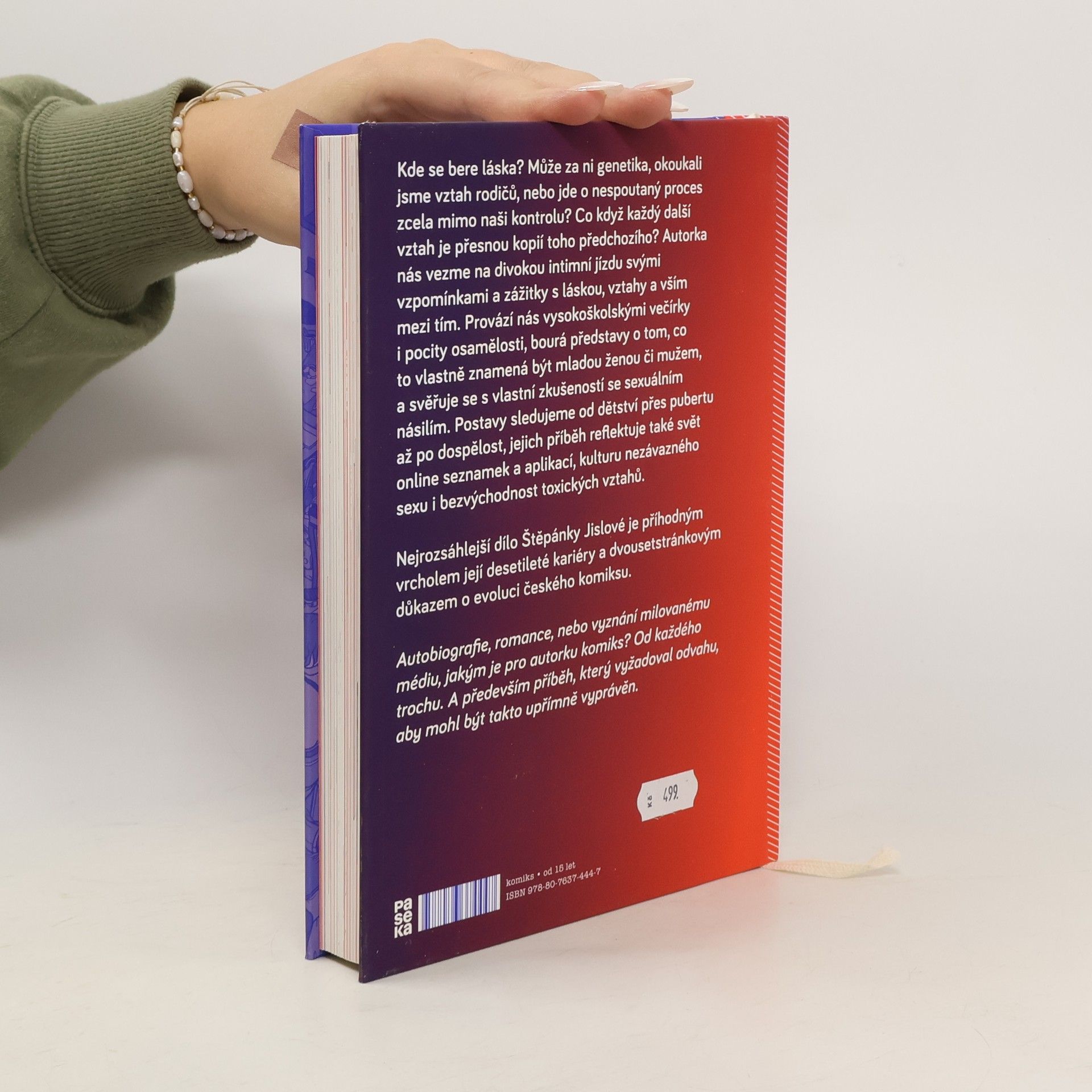 Autobiografie, romance, nebo vyznání milovanému médiu, jakým je pro autorku komiks? Od každého trochu. A především příběh, který vyžadoval odvahu, aby mohl být takto upřímně vyprávěn. Hlavní hrdinka Štěpánka nás provází svými intimními zkušenostmi od puberty po současnost a přitom zkoumá nepsaná pravidla lásky a vztahů. Štěpánčiny představy o vztazích formovalo soužití s rodiči na sídlišti v devadesátých letech, tehdy oblíbené časopisy pro dívky a televizní seriály ze Západu. Autorka reflektuje svět online seznamek a chatů, moderní aplikace spojené často s nezávazným sexem nebo toxické vztahy. Provází nás vysokoškolskými večírky i pocity osamělosti, nabourává představy o tom, co to vlastně znamená být mladou ženou či mužem, a svěřuje se také s vlastní zkušeností se zneužitím.Nejrozsáhlejší dílo Štěpánky Jislové je příhodným vrcholem její desetileté kariéry a dvousetstránkovým důkazem o evoluci českého komiksu. (převzato z webu nakladatelství Paseka)