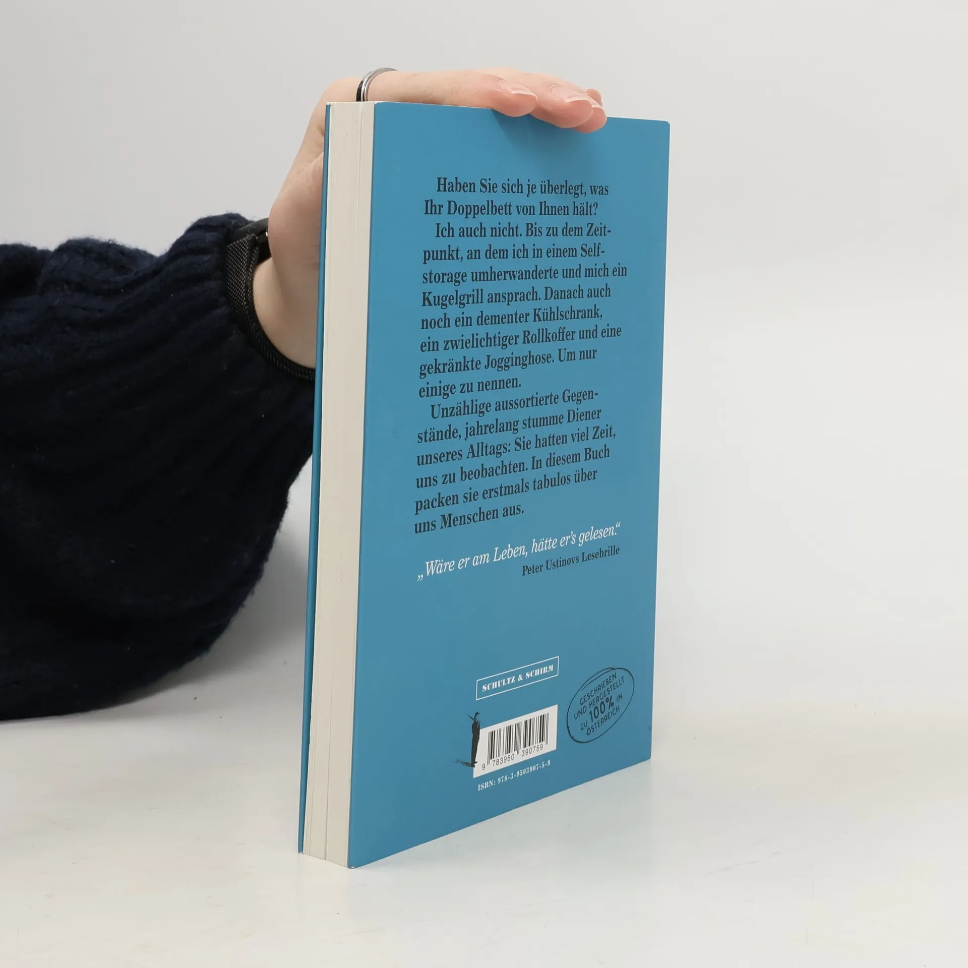 Haben Sie sich je überlegt, was Ihr Doppelbett von Ihnen hält? Ich auch nicht. Bis zu dem Zeitpunkt, an dem ich in einem Selfstorage umherwanderte und mich ein Kugelgrill ansprach. Danach auch noch ein dementer Kühlschrank, ein zwielichtiger Rollkoffer und eine gekränkte Jogginghose. Um nur einige zu nennen. Unzählige aussortierte Gegenstände, jahrelang stumme Diener unseres Alltags: Sie hatten viel Zeit, uns zu beobachten. In diesem Buch packen sie erstmals tabulos über uns Menschen aus. „Wäre er am Leben, hätte er’s gelesen.“ Peter Ustinovs Lesebrille „Mir ist es zu unrealistisch.“ J. K. Rowlings sprechender Hut „Endlich kriegen wir eine Stimme.“ Udo Jürgens' Bademantel