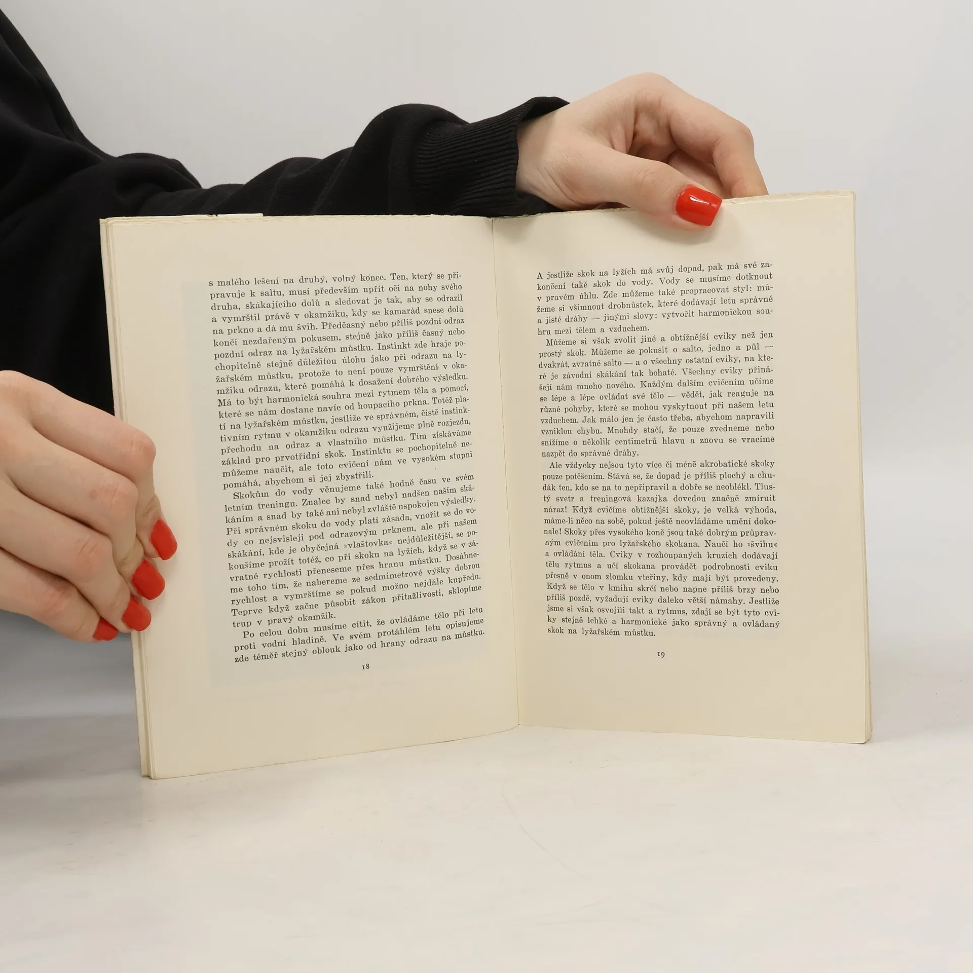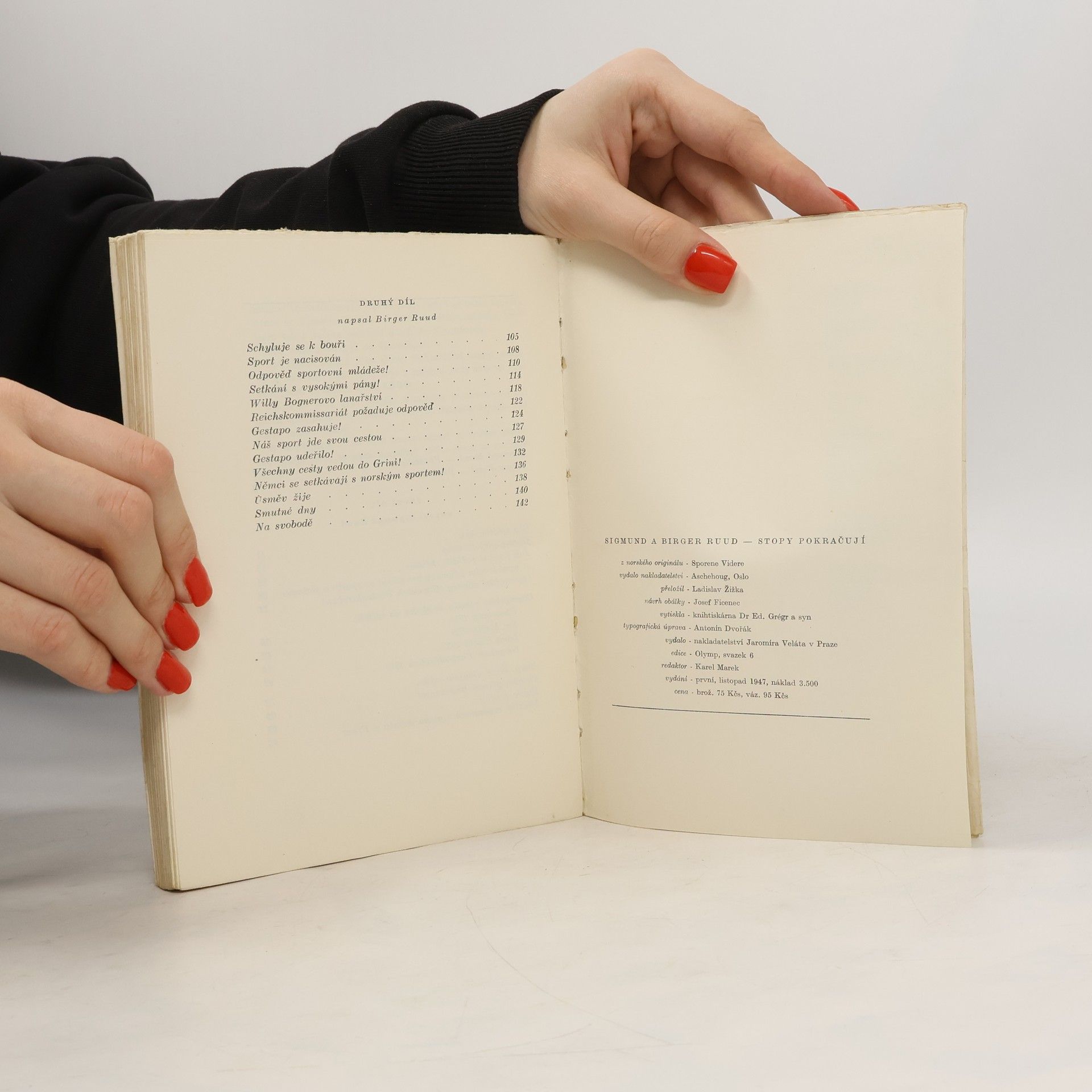 Ve vyprávění jejích autorů, z nichž mladší Birger je mistrem světa ve skoku na lyžích a olympijským vítězem a starší, bystrý Sigmund, patřil k nejlepším skokanům světa, ožívají před námi poslední předválečná léta největším mezinárodních lyžařských závodů, bohatá a vzrušující v klíně pohádkových velehorských panoramat. Velmi obratně dovedou autoři prokládat spádná líčení sportovních bojů zkušenými a nabádanými instrukcemi, které činí z jejich knihy zároveň jednu z nejlepších skokanských příruček. Velmi závažná je druhá část knihy, v níž Birger Ruud vykresluje svěže, poutavě a na mnoha místech s neodolatelným humorem, který nám dává zapomenout na otřesné stránky díla, soumrak norského sportu za německé okupace, vytrvalý boj severských sportovců proti okupantům, kteří jich chtěli zneužít pro nekalou propagandu svých "novoevrpanských ideí", líčí tajné treningy a závody, zápas s nouzí a nedostatkem sportovních potřeb a vydatného jídla. V těchto pozoruhodných kapitolách vyrůstá sport na zázračnou zbraň lidskosti, přímosti a poctivosti a mravní i tělesné čistoty, která umožnila severským mistrům překonat nástrahy nacistů a překonat i trýznění koncentráků a pohlede na smrt věrných kamarádů. A ke konci knihy přechází vyprávění opět do mírových poměrů a zabývá se perspektivami budoucnosti.