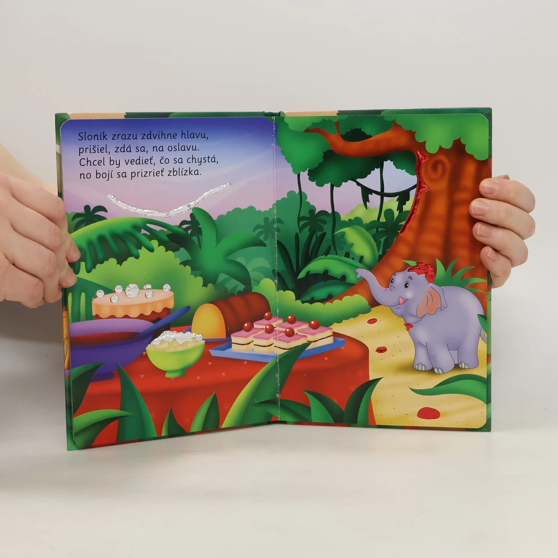 Hlboko v džungli žije nesmelý sloník. Podarí sa mu nájsť si kamarátov? Knižka plná trblietavých obrázkov a milých veršíkov, ktoré si deti rýchlo obľúbia.