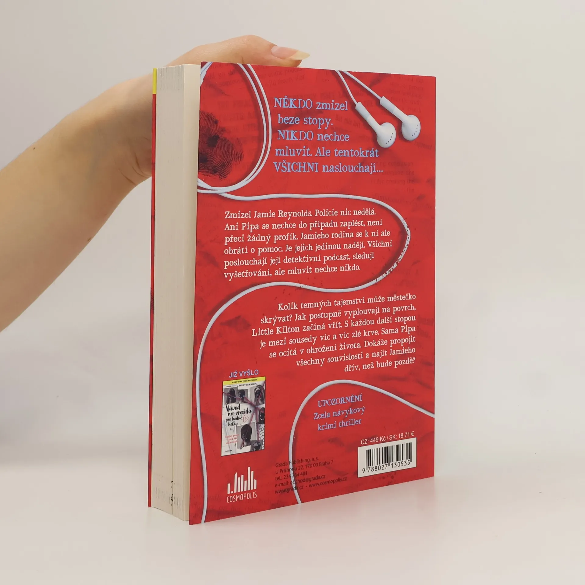 NĚKDO zmizel beze stopy. NIKDO nechce mluvit. Ale tentokrát VŠICHNI naslouchají. Zmizel Jamie Reynolds. Policie nic nedělá. Ani Pipa se nechce do případu zaplést, není přeci žádný profík. Jamieho rodina se k ní ale obrátí o pomoc. Je jejich jedinou nadějí. Všichni poslouchají její detektivní podcast, sledují vyšetřování, ale mluvit nechce nikdo. Kolik temných tajemství může městečko skrývat? Jak postupně vyplouvají na povrch, Little Kilton začíná vřít. S každou další stopou je mezi sousedy víc a víc zlé krve. Sama Pipa se ocitá v ohrožení života. Dokáže propojit všechny souvislosti a najít Jamieho dřív, než bude pozdě?
