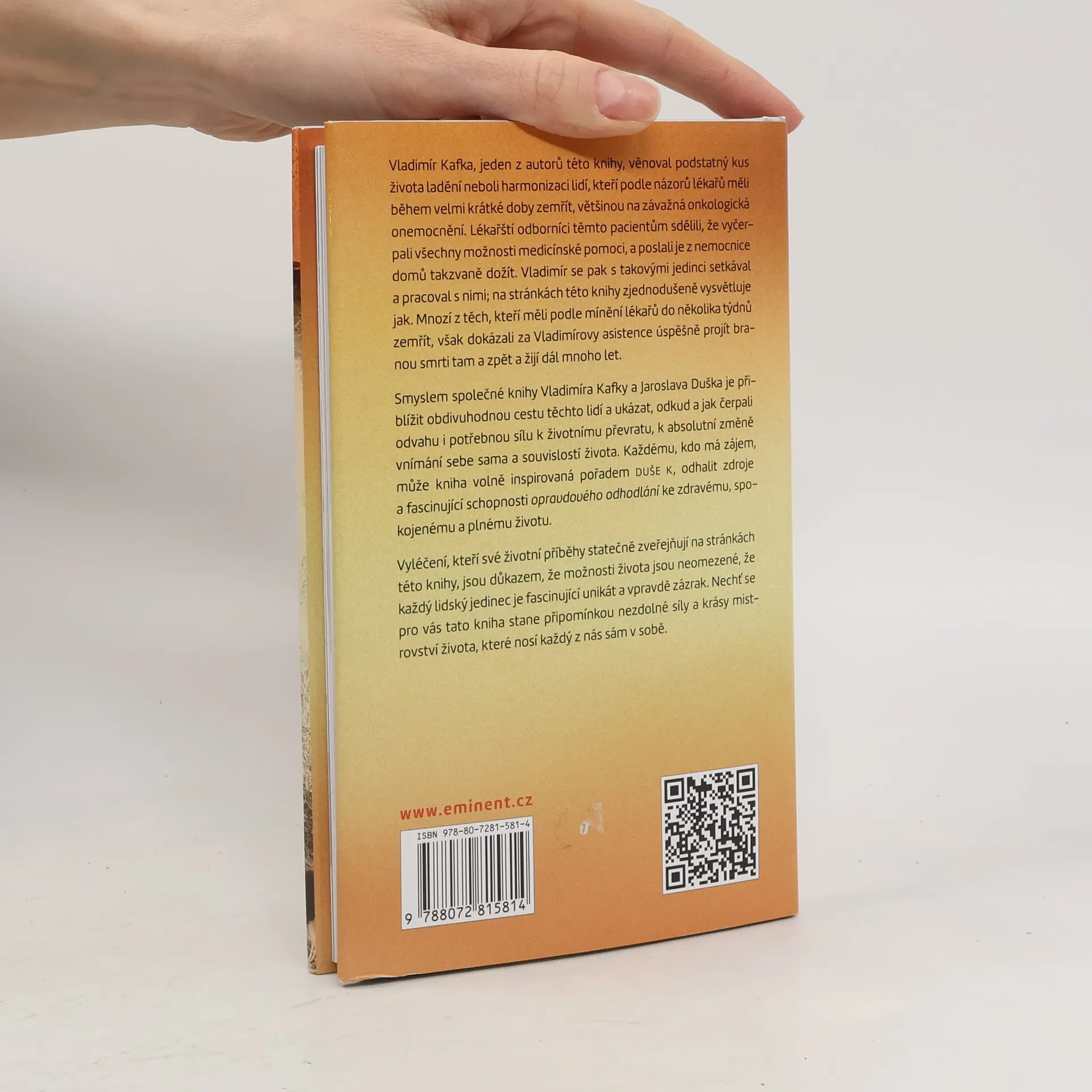 Vladimír Kafka věnoval podstatný kus života ladění nebo-li harmonizaci lidí, kteří podle názorů lékařů měli během velmi krátké doby zemřít, většinou na závažná onkologická onemocnění. Lékařští odborníci těmto pacientům sdělili, že vyčerpali všechny možnosti medicínské pomoci, a poslali je z nemocnice domů tak zvaně dožít. Vladimír se pak s těmito jedinci setkával a pracoval s nimi. Na stránkách této knihy zjednodušeně vysvětluje jak. Mnozí z těch, kteří měli podle mínění lékařů do několika týdnů zemřít, však dokázali za Vladimírovy asistence úspěšně projít branou smrti tam a zpět a žijí dál mnoho let. Smyslem společné knihy Vladimíra Kafky a Jaroslava Duška je přiblížit obdivuhodnou cestu těchto lidí a ukázat, odkud a jak čerpali odvahu i potřebnou sílu k životnímu převratu, k absolutní změně vnímání sebe sama a souvislostí života. Vyléčení, kteří své životní příběhy statečně zveřejňují na stránkách této knihy, jsou důkazem, že možnosti života jsou neomezené, že každičký lidský jedinec je fascinující unikát a - vpravdě zázrak.