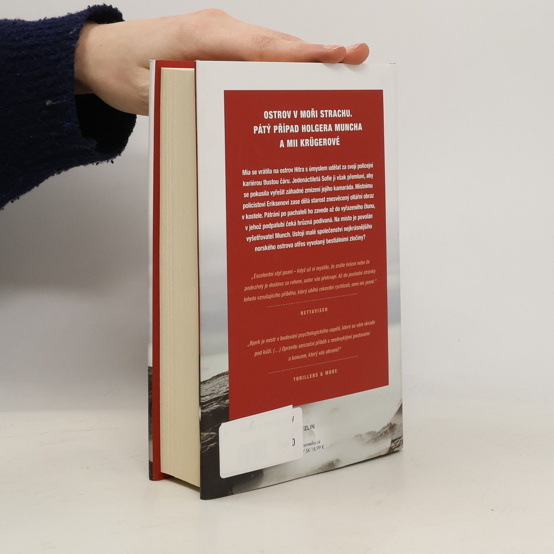 Ostrov v moři strachu. Pátý případ Holgera Muncha a Mii Krügerové.Mia se vrátila na ostrov Hitra s úmyslem udělat za svojí policejní kariérou tlustou čáru. Jedenáctiletá Sofie ji však přemluví, aby se pokusila vyřešit záhadné zmizení jejího kamaráda. Místnímu policistovi Eriksenovi zase dělá starost znesvěcený oltářní obraz v kostele. Pátrání po pachateli ho zavede až do vyřazeného člunu, v jehož podpalubí čeká hrůzná podívaná. Na místo je povolán vyšetřovatel Munch. Ustojí malé společenství nejkrásnějšího norského ostrova otřes vyvolaný bestiálními zločiny?