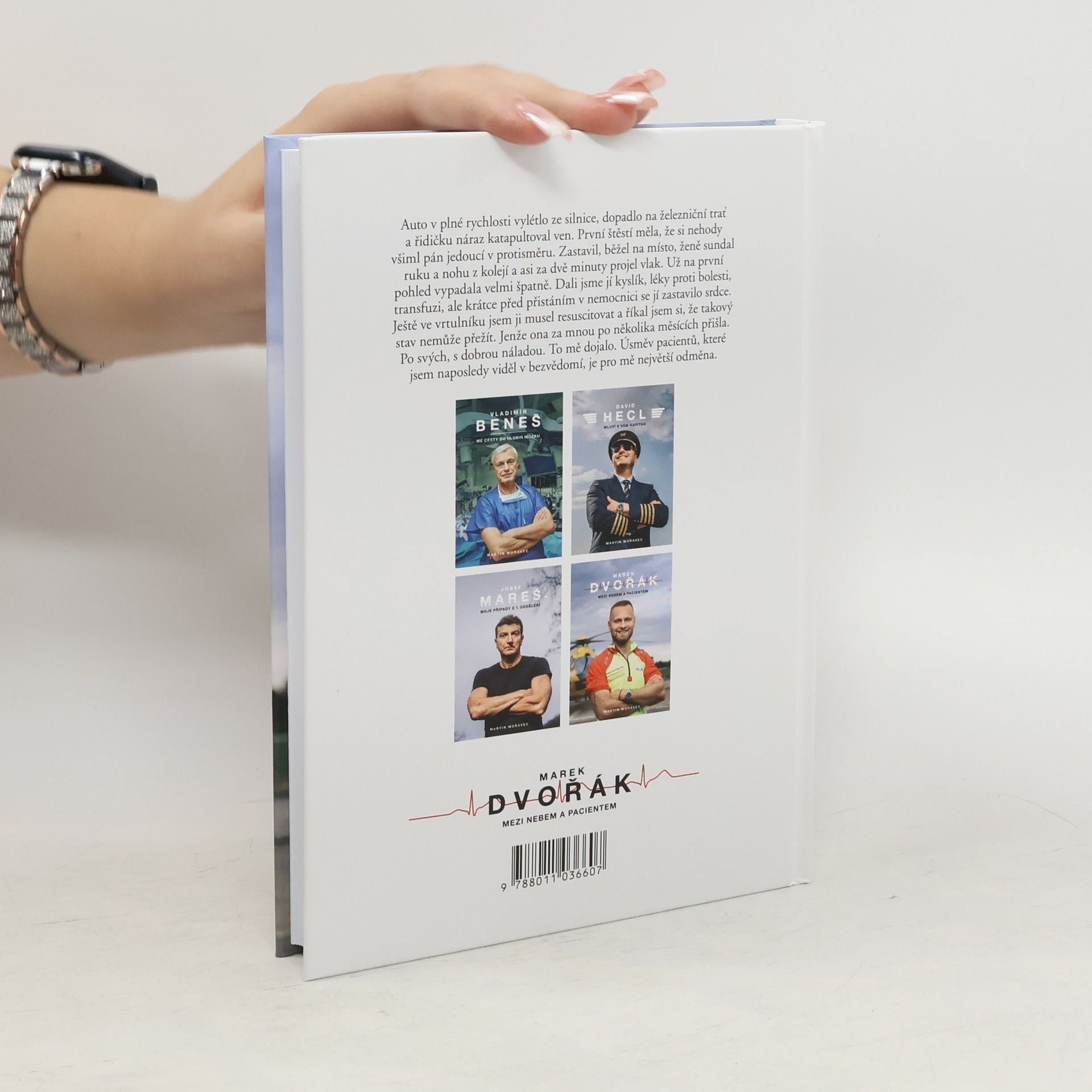 Při jeho práci jde o vteřiny. Během nich se musí rozhodnout, vytěsnit emoce a často si i sáhnout na dno. Lékař letecké záchranky Marek Dvořák takové situace zažívá denně a teď i vás vezme do světa, o kterém snil už jako malý kluk.Jak vypadá práce doktora ve vrtulníku? Na které vzlety nikdy nezapomene? Kdy měl při zásahu strach a co už by ve službě nechtěl zažít? Je to vyprávění, při kterém se občas tají dech. Chvílemi je dojemné a jindy vás naopak rozesměje. Taky vás naučí, že při první pomoci se není čeho bát, a možná i přiměje víc přemýšlet nad tím, co v životě děláte.Dvořák je mezi českými doktory svéráz. A to nejen kvůli mnoha tetováním, která má po těle. Pro kontroverzní názor nejde daleko, má osobitý smysl pro humor, ale zároveň je na každé jeho větě znát, jak moc medicínou žije. Když vypráví o pacientce, která ho po několika měsících od těžkého úrazu překvapila návštěvou a u které si myslel, že nemohla přežít, dojde i na slzy.