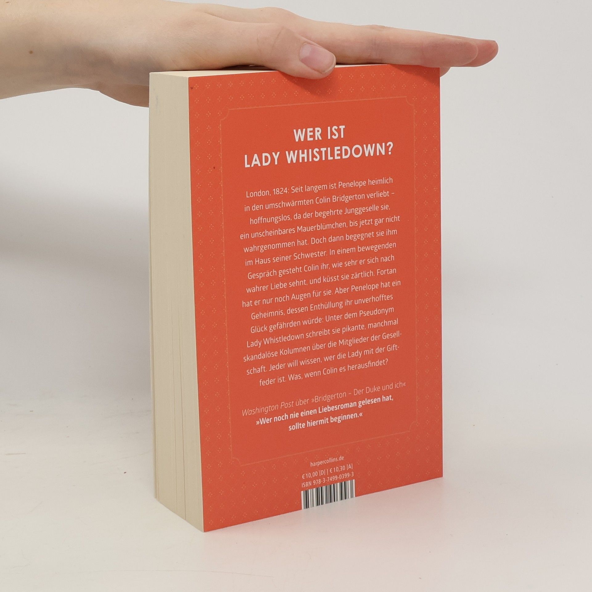 Wer ist Lady Whistledown? London, 1824: Seit langem ist Penelope heimlich in den umschwärmten Colin Bridgerton verliebt – hoffnungslos, da der begehrte Junggeselle sie, ein unscheinbares Mauerblümchen, bis jetzt gar nicht wahrgenommen hat. Doch dann begegnet sie ihm im Haus seiner Schwester. In einem bewegenden Gespräch gesteht Colin ihr, wie sehr er sich nach wahrer Liebe sehnt, und küsst sie zärtlich. Fortan hat er nur noch Augen für sie. Aber Penelope hat ein Geheimnis, dessen Enthüllung ihr unverhofftes Glück gefährden würde: Unter dem Pseudonym Lady Whistledown schreibt sie pikante, manchmal skandalöse Kolumnen über die Mitglieder der Gesellschaft. Jeder will wissen, wer die Lady mit der Giftfeder ist. Was, wenn Colin es herausfindet? »Wer noch nie einen Liebesroman gelesen hat, sollte hiermit beginnen.« Washington Post über »Bridgerton– Der Duke und ich«