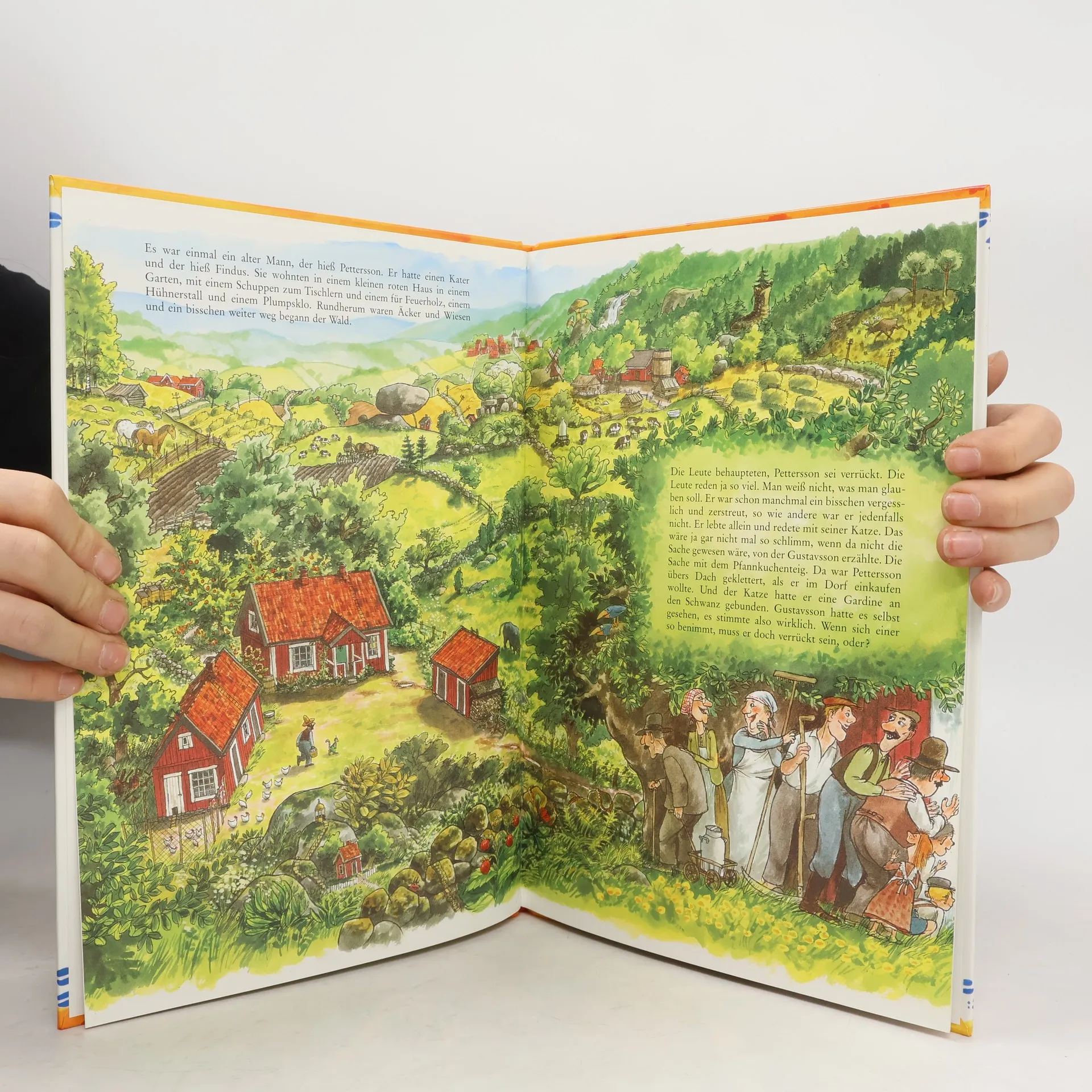 In „Eine Geburtstagstorte für die Katze“, dem ersten Band der beliebten Kinderbuchreihe von Sven Nordqvist, erleben der alte Pettersson und sein sprechender Kater Findus ein chaotisches Abenteuer, das mit dem einfachen Vorhaben beginnt, eine Pfannkuchentorte für Findus' Geburtstag zu backen. Findus, der Kater mit der Vorliebe für Pfannkuchentorten und gleich drei Geburtstagen im Jahr, steht im Mittelpunkt dieser liebenswerten Geschichte. Doch als Pettersson feststellt, dass das Mehl zum Backen der Torte fehlt, beginnt eine Reihe von Missgeschicken und Verwicklungen. Der Versuch, Mehl zu besorgen, mündet in eine komische Odyssee, bei der Pettersson mit einem platten Fahrradreifen, einem verschlossenen Schuppen ohne Schlüssel und einem überraschenden Aufeinandertreffen mit einem Stier konfrontiert wird. Die Situation eskaliert, als die Dorfbewohner Pettersson für verrückt halten, während er versucht, alles für Findus' Geburtstagstorte zu arrangieren. Diese Geschichte zeichnet sich durch ihren Witz, ihre Wärme und die tiefe Freundschaft zwischen Pettersson und Findus aus. Nordqvists detailreiche und fantasievolle Illustrationen machen das Buch zu einem visuellen Vergnügen und laden dazu ein, immer wieder neue Details in den Bildern zu entdecken. Die Erzählung lebt von den skurrilen Einfällen und der Erfindungsgabe des Duos, die trotz aller Hindernisse zeigen, dass am Ende die Liebe und die Freude am gemeinsamen Feiern das Wichtigste sind. „Eine Geburtstagstorte für die Katze“ ist somit ein zeitloser Klassiker, der in keiner Kinderbuchsammlung fehlen sollte und der die Herzen seiner Leserinnen und Leser immer wieder aufs Neue erobert. Klassischer Kinderbuchcharme : Die herzerwärmende Geschichte von Pettersson und Findus begeistert seit Jahrzehnten Kinder ab 4 Jahren und Erwachsene gleichermaßen. Detailreiche und fantasievolle Illustrationen : Sven Nordqvists Illustrationen sind ein Fest für die Augen und regen die Fantasie an, indem sie zahlreiche Details und verborgene Geschichten enthalten. Humorvolle und lehrreiche Handlung : Die Abenteuer von Pettersson und Findus unterhalten nicht nur, sondern vermitteln auch Werte wie Freundschaft, Einfallsreichtum und die Bedeutung von Zusammenhalt. Liebenswerte und unvergessliche Charaktere : Die einzigartigen Persönlichkeiten von Pettersson und Findus machen jedes Buch der Reihe zu einem unvergesslichen Erlebnis. Vielfältige Lesemomente : Ideal zum Vorlesen und für erste Leseversuche, bietet das Buch spannende Unterhaltung und fördert die Lesefreude bei jungen Leserinnen und Lesern. Teil einer beliebten Reihe : Als erster Band der „Pettersson und Findus“-Reihe bietet dieses Buch den perfekten Einstieg in die Welt der beiden ungleichen Freunde.