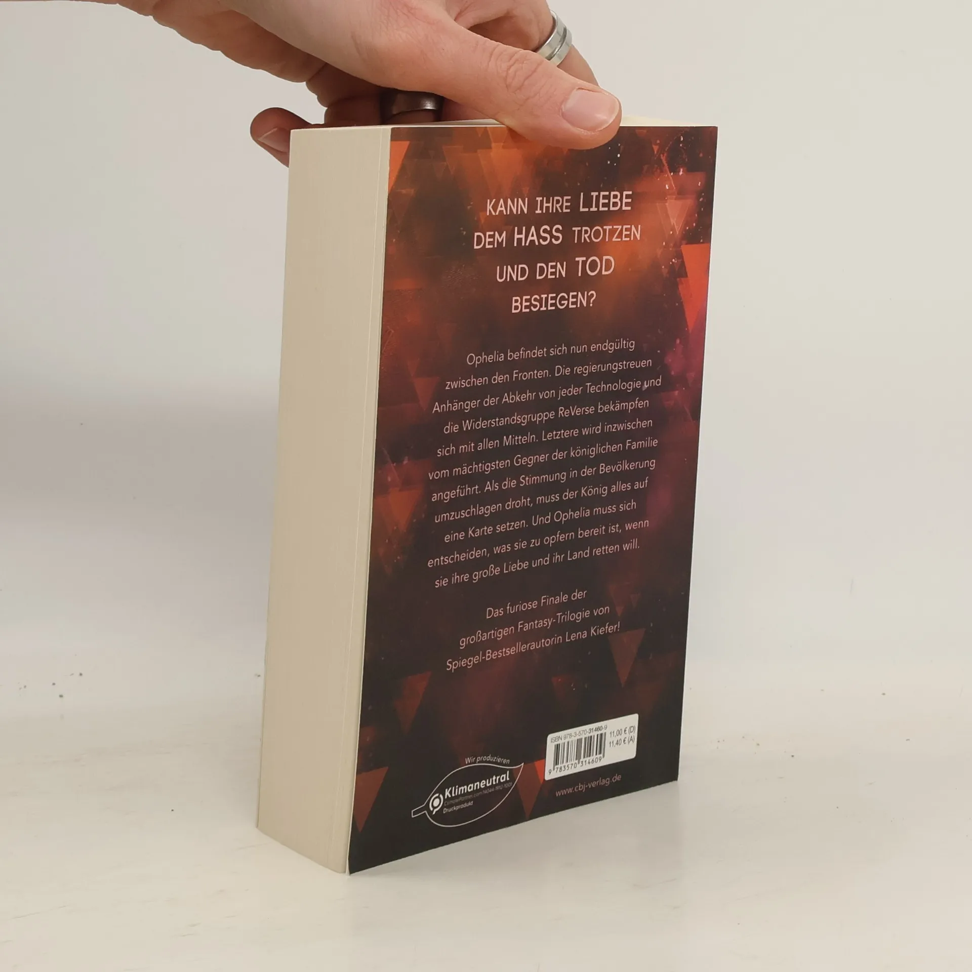 Kann ihre Liebe dem Hass trotzen und den Tod besiegen? Ophelia befindet sich nun endgültig zwischen den Fronten. Die regierungstreuen Anhänger der Abkehr von jeder Technologie und die Widerstandsgruppe ReVerse bekämpfen sich mit allen Mitteln. Letztere wird inzwischen vom mächtigsten Gegner der königlichen Familie angeführt. Als die Stimmung in der Bevölkerung umzuschlagen droht, muss der König alles auf eine Karte setzen. Und Ophelia muss sich entscheiden, was sie bereit ist zu opfern, wenn sie ihre große Liebe und ihr Land retten will. Alle Bände der Ophelia Scale-Trilogie: Ophelia Scale – Die Welt wird brennen Ophelia Scale – Der Himmel wird beben Ophelia Scale – Die Sterne werden fallen Ophelia Scale – Wie alles begann (Shortstory, nur als E-Book verfügbar)