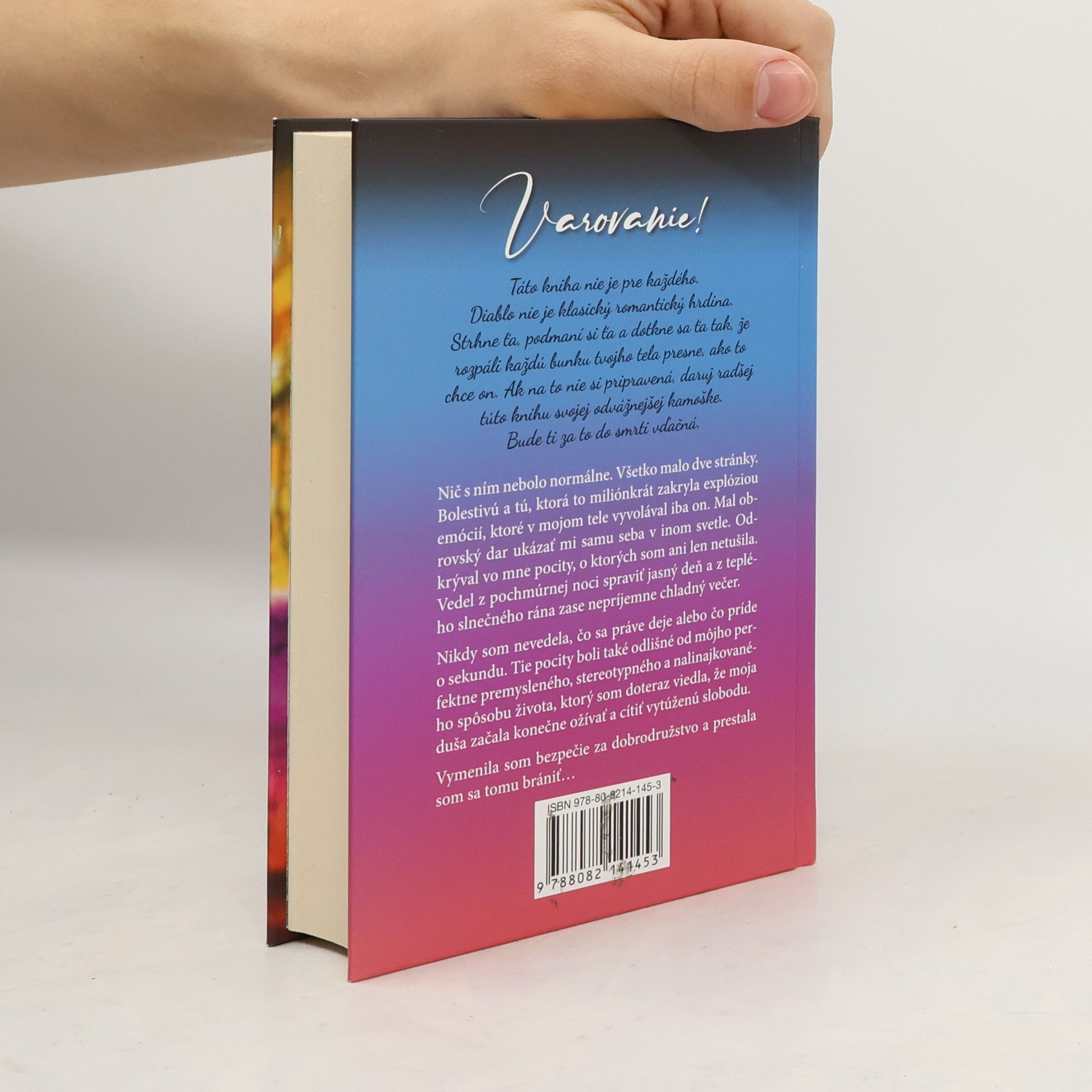 Varovanie! Táto kniha nie je pre každého. Diablo nie je klasický romantický hrdina. Strhne ťa, podmaní si ťa a dotkne sa ťa tak, že rozpáli každú bunku tvojho tela presne, ako to chce on. Ak na to nie si pripravená, daruj radšej túto knihu svojej odvážnejšej kamoške. Bude ti za to do smrti vďačná. Nič s ním nebolo normálne. Všetko malo dve stránky. Bolestivú a tú, ktorá to miliónkrát zakryla explóziou emócií, ktoré v mojom tele vyvolával iba on. Mal obrovský dar ukázať mi samu seba v inom svetle. Odkrýval vo mne pocity, o ktorých som ani len netušila. Vedel z pochmúrnej noci spraviť jasný deň a z teplého slnečného rána zase nepríjemne chladný večer. Nikdy som nevedela, čo sa práve deje alebo čo príde o sekundu. Tie pocity boli také odlišné od môjho perfektne premysleného, stereotypného a nalinajkovaného spôsobu života, ktorý som doteraz viedla, že moja duša začala konečne ožívať a cítiť vytúženú slobodu. Vymenila som bezpečie za dobrodružstvo a prestala som sa tomu brániť...