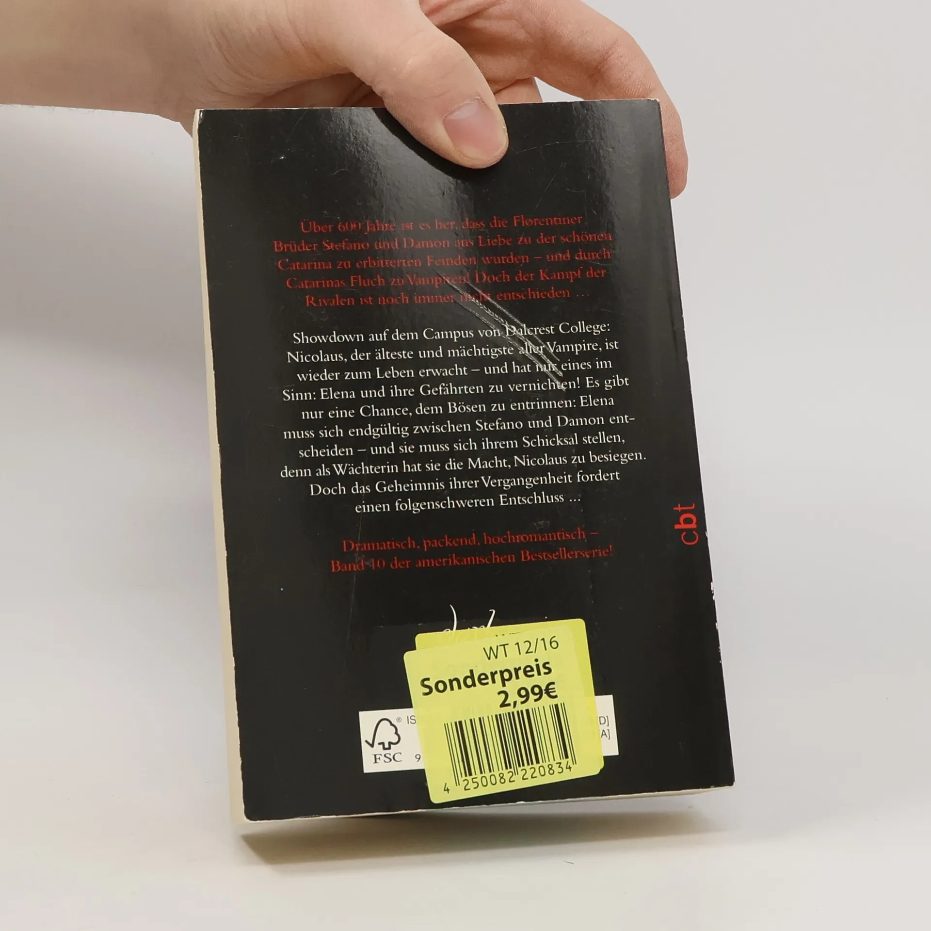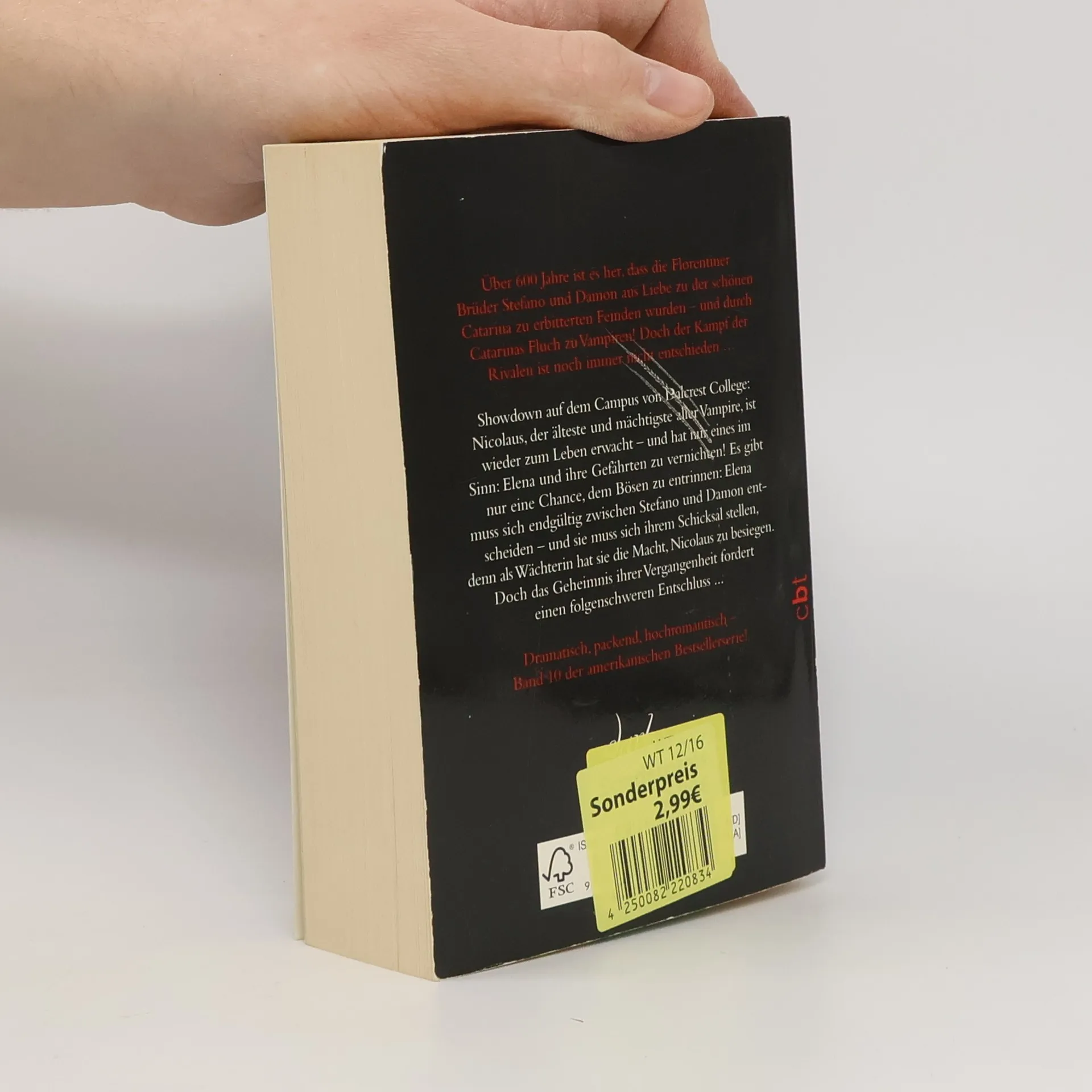Die Spiegel Besteller-Romanvorlage zur beliebten TV-Serie „The Vampire Diaries“. Dramatisch, packend, leidenschaftlich – das furiose Finale des Vampir-Bestsellers! Showdown auf dem Campus von Dalcrest College: Nicolaus, der älteste und mächtigste aller Vampire, ist wieder zum Leben erwacht – und hat nur eines im Sinn: Elena und ihre Gefährten zu vernichten! Eine atemlose Jagd beginnt, und es gibt nur eine Chance, dem Bösen zu entrinnen: Elena muss sich endgültig zwischen Stefano und Damon entscheiden – und sie muss sich ihrem Schicksal stellen, denn als Wächterin hat sie die Macht, Nicolaus zu besiegen. Doch das Geheimnis ihrer Vergangenheit fordert einen folgenschweren Entschluss ... Leidenschaftlich und blutdürstig, die Tagebücher eines Vampirs sind ein fesselnder Pageturner mit Suchtgefahr!