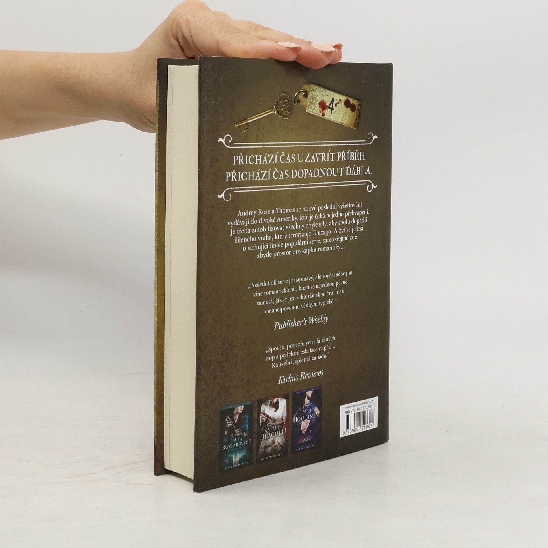 Audrey Rose Wadsworthová připlouvá se svým partnerem Thomasem Cresswellem do Ameriky, dravé a křiklavé, tolik odlišné od malebných uliček Anglie. Vylodí se v New Yorku, odkud se po stopě záhadného vraha společně vydávají do Chicaga. Pátrání je zavede na slavnou chicagskou Světovou výstavu, jejíž romantické bílé pavilony na březích Michiganského jezera jsou náhle potřísněny krví. Audrey Rose s Thomasem v příběhu odhalí totožnost brutálního sériového vraha a stojí před nejtěžším úkolem ze všech – dopadnout toho ďábla! V katakombách pod jeho Vražedným hradem nakonec Audrey Rose svede zápas o holý život. Zvítězí a polapí démona chicagských ulic do pasti? To se dozvíte ve strhujícím závěrečném příběhu série, v jejímž úvodu se autorka vydala po stopách Jacka Rozparovače, k němuž se v závěru opět vrací. Čtvrtý díl série je napínavý, ale současně se jím vine romantická nit, která se nejednou pěkně zamotá, jak je pro viktoriánskou éru a naší emancipovanou forenzní vědkyni Audrey Rose typické.