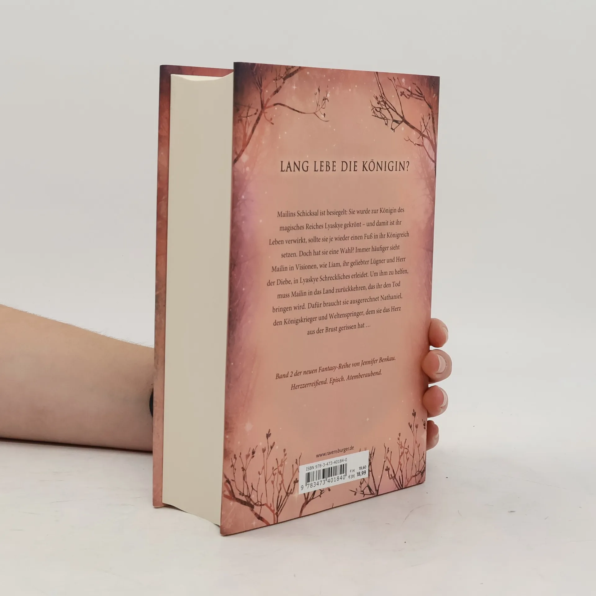 Mailins Schicksal ist besiegelt: Sie wurde zur Königin von Lyaskye gekrönt und kann nie wieder in ihr Königreich zurückkehren. Doch genau das ist ihr Ziel, denn ihr Herz gehört Liam. Um zu ihm zurückzukehren, benötigt sie Nathaniel, den Königskrieger und Weltenspringer, dem sie das Herz gebrochen hat. Diese Geschichte ist der zweite Band einer High-Romantasy-Reihe von Jennifer Benkau und bietet eine herzzerreißende, epische und atemberaubende Erzählung. Benkaus Romantasy-Reihen „One True Queen“, „Das Reich der Schatten“ und „The Lost Crown“ spielen in derselben Fantasy-Welt und können unabhängig voneinander gelesen werden. Die Reihenfolge der Veröffentlichungen ist wie folgt: - One True Queen, Band 1: Von Sternen gekrönt - One True Queen, Band 2: Aus Schatten geschmiedet - Das Reich der Schatten, Band 1: Her Wish So Dark - Das Reich der Schatten, Band 2: His Curse So Wild - The Lost Crown, Band 1: Wer die Nacht malt - The Lost Crown, Band 2: Wer das Schicksal zeichnet Zusätzlich hat Jennifer Benkau New-Adult-Romance-Romane veröffentlicht, darunter „A Reason To Stay“ und „A Reason To Hope“ aus der Liverpool-Reihe.