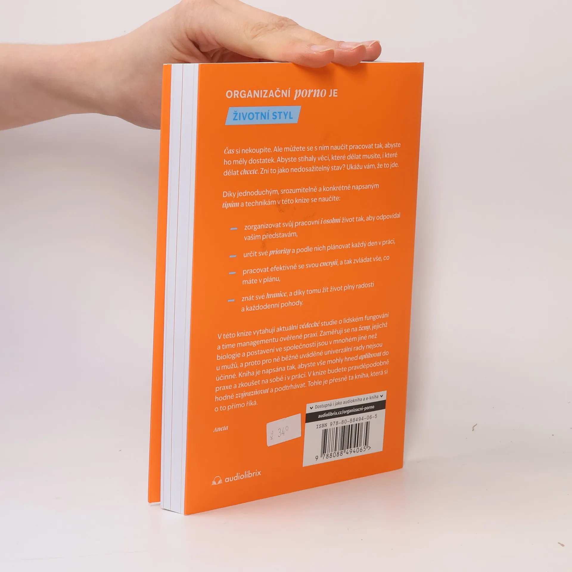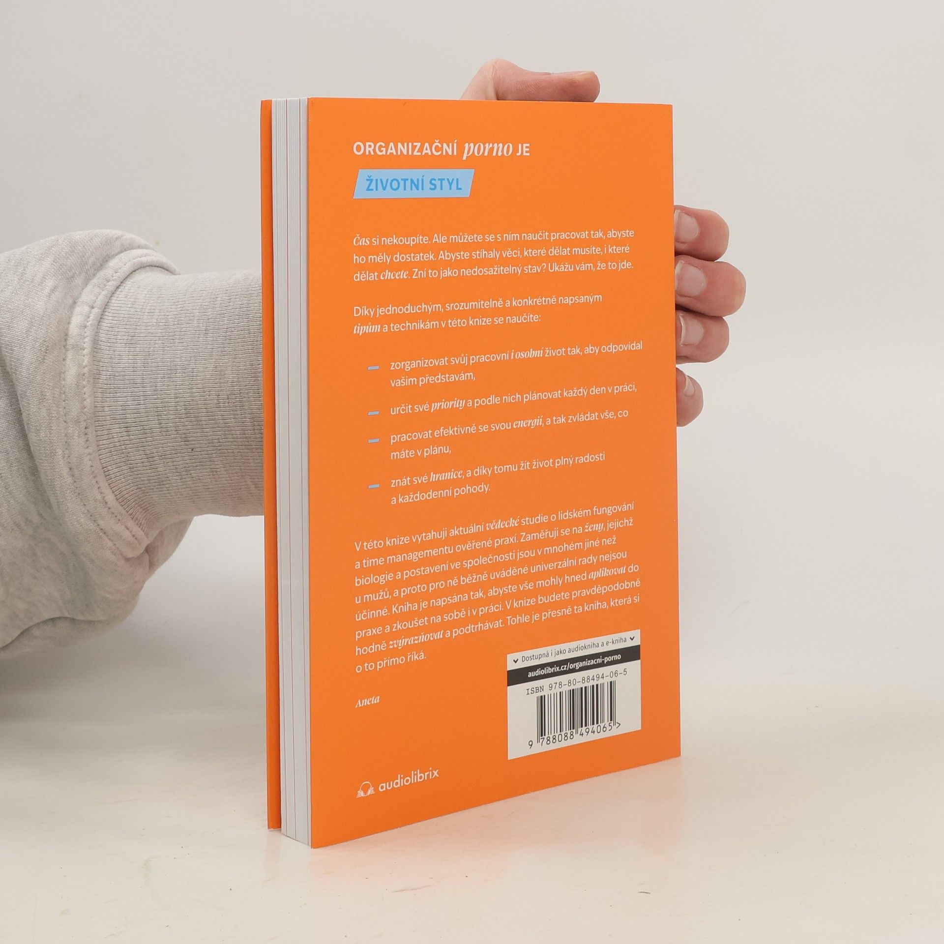 Organizační porno je životní styl. Čas si nekoupíte. Ale můžete se s ním naučit pracovat tak, abyste ho měly dostatek. Abyste stíhaly věci, které dělat musíte, i které dělat chcete. Zní to jako nedosažitelný stav? Ukážu vám, že to jde. Díky jednoduchým, srozumitelně a konkrétně napsaným tipům a technikám v této knize se naučíte: • zorganizovat svůj pracovní i osobní život tak, aby odpovídal vašim představám, • určit své priority a podle nich plánovat každý den v práci, • pracovat efektivně se svou energií, a tak zvládat vše, co máte v plánu, • znát své hranice, a díky tomu žít život plný radosti a každodenní pohody. V této knize vytahuji aktuální vědecké studie o lidském fungování a time managementu ověřené praxí. Zaměřuji se při tom na ženy, jejichž biologie a postavení ve společnosti jsou v mnohém jiné než u mužů, a proto pro ně běžně uváděné univerzální rady nejsou účinné. Kniha je napsána tak, abyste vše mohly hned aplikovat do praxe a zkoušet na sobě i v práci. V knize budete pravděpodobně hodně zvýrazňovat a podtrhávat. Tohle je přesně ta kniha, která si o to přímo říká.