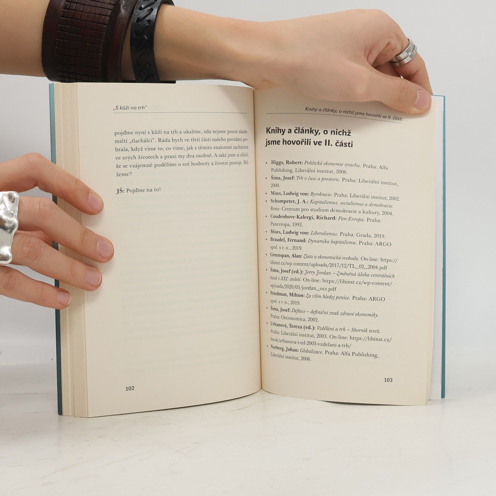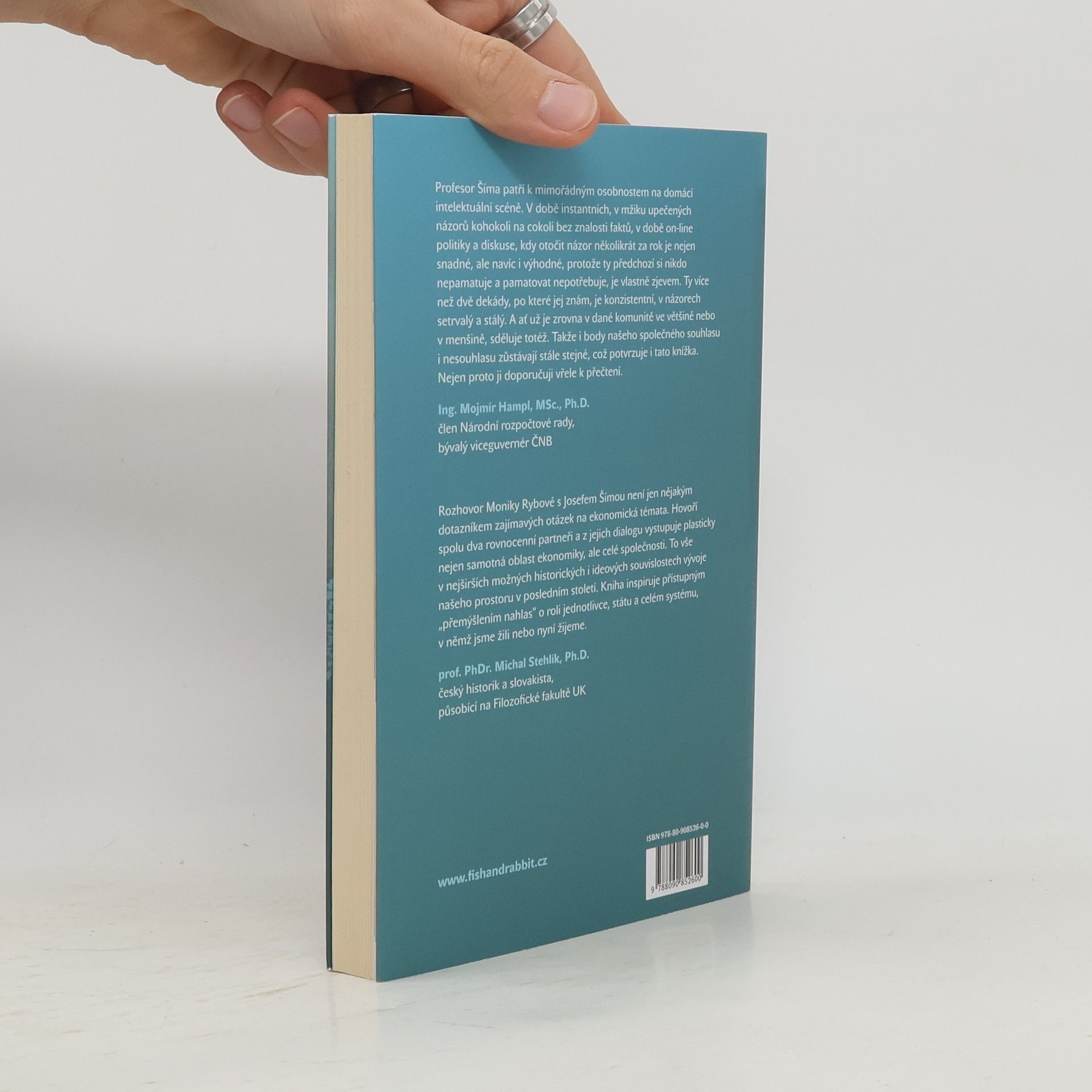 "ROZMLUVY O SVOBODĚ, RESEKTU K ČLOVĚKU, EKONOMII A PENĚZÍCH „Co máme v sobě – v hlavě, v rukou –nám vláda nesebere.“ Rozhovor dvou odborníků, kteří mají rádi svoji práci a nebojí se říci, co si myslí. Oba aktéři vám ukáží, že nejen jejich obory, ale i jejich poznatky mají mnoho společného. Dobrý ekonom nemůže správně rozhodovat bez znalosti historie, historik je bez znalosti toho, jak fungují ekonomické vztahy, poloslepý. Povídání o zásadách zdravého ekonomicko-společenského přístupu Rakouské školy. Nezbytně se proto musí otevřít i debata nad otázkou morálky a hodnot. Složitá témata historie a současnosti naší společnosti jsou v textu přiblížena s nebývale srozumitelnou formou, aniž by se klouzalo pouze po povrchu. Profesor Josef Šíma s Monikou Rybovou vám lidsky přiblíží, jaká je role jednotlivce a státu ve společnosti, prozradí detaily ze svého osobního života, a hlavně vám ukáží cestu, jak žít a nebýt zaskočen změnami ve společnosti a v ekonomice."