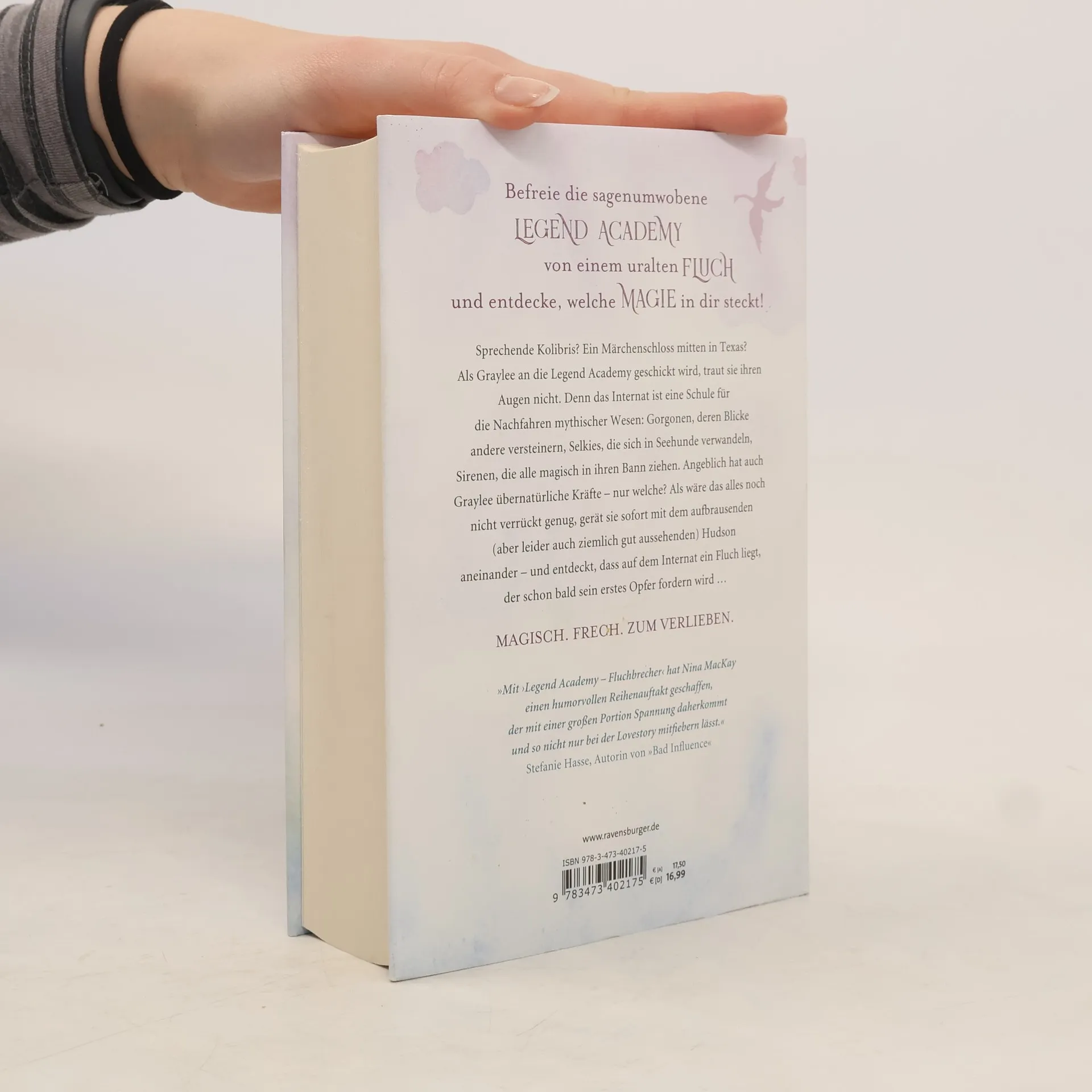 Befreie die sagenumwobene Legend Academy von einem uralten Fluch und entdecke, welche Magie in dir steckt! Sprechende Kolibris? Ein Schloss in Texas? Als Graylee an die Legend Academy geschickt wird, traut sie ihren Augen nicht. Denn das Internat ist eine Schule für die Nachfahren mythischer Wesen. Angeblich hat auch Graylee übernatürliche Kräfte – nur welche? Als wäre das alles nicht verrückt genug, gerät sie sofort mit dem aufbrausenden (aber leider auch ziemlich gut aussehenden) Hudson aneinander – und entdeckt, dass auf dem Internat ein Fluch liegt, der schon bald sein erstes Opfer fordern wird … Band 1 des Fantasy-Zweiteilers von Nina MacKay