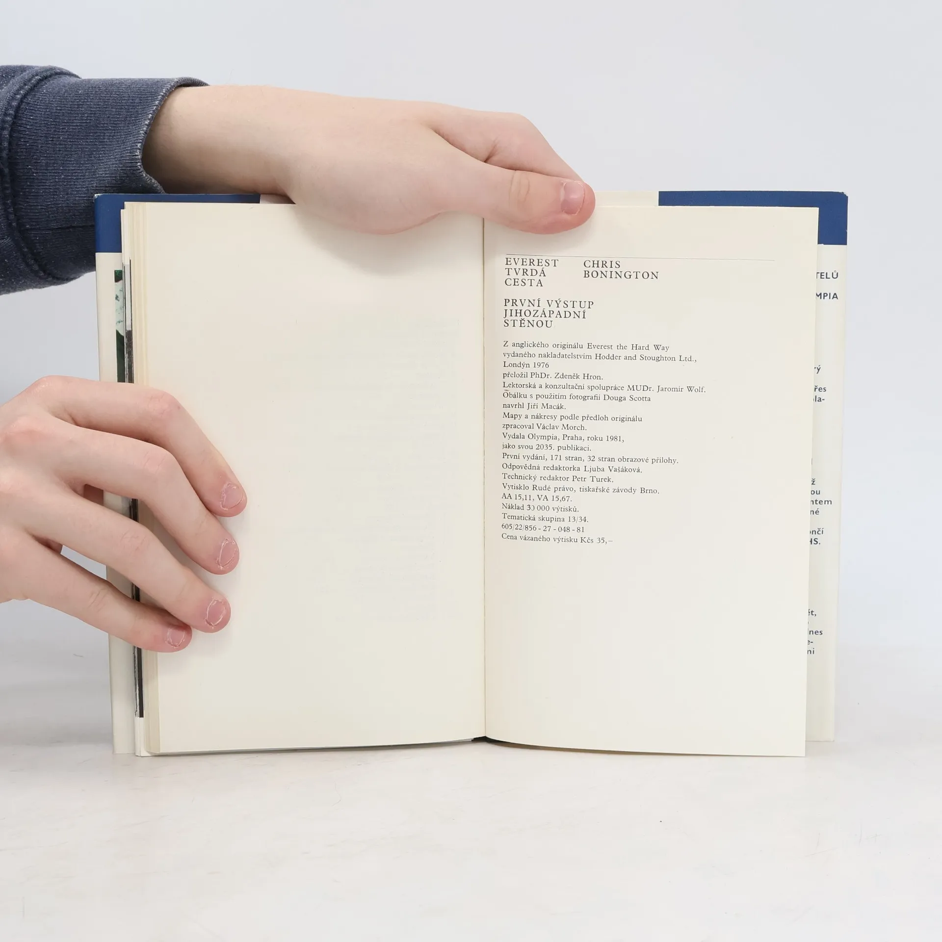 Reportážní kniha britského horolezce líčí výstup britské himalájské expedice r. 1975 na jihozápadní stěnu Mount Everestu.