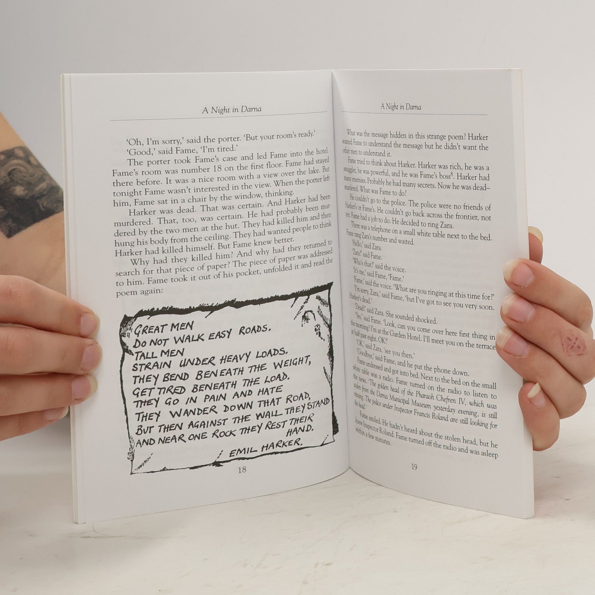 "Harker had written a poem before he was killed. But why? Harker wasn't a poet. He didn't even read poetry. He was a clever man, a tough man, but he was interested in money, not poetry. John Samuel Fame didn't understand it." -- Cover.