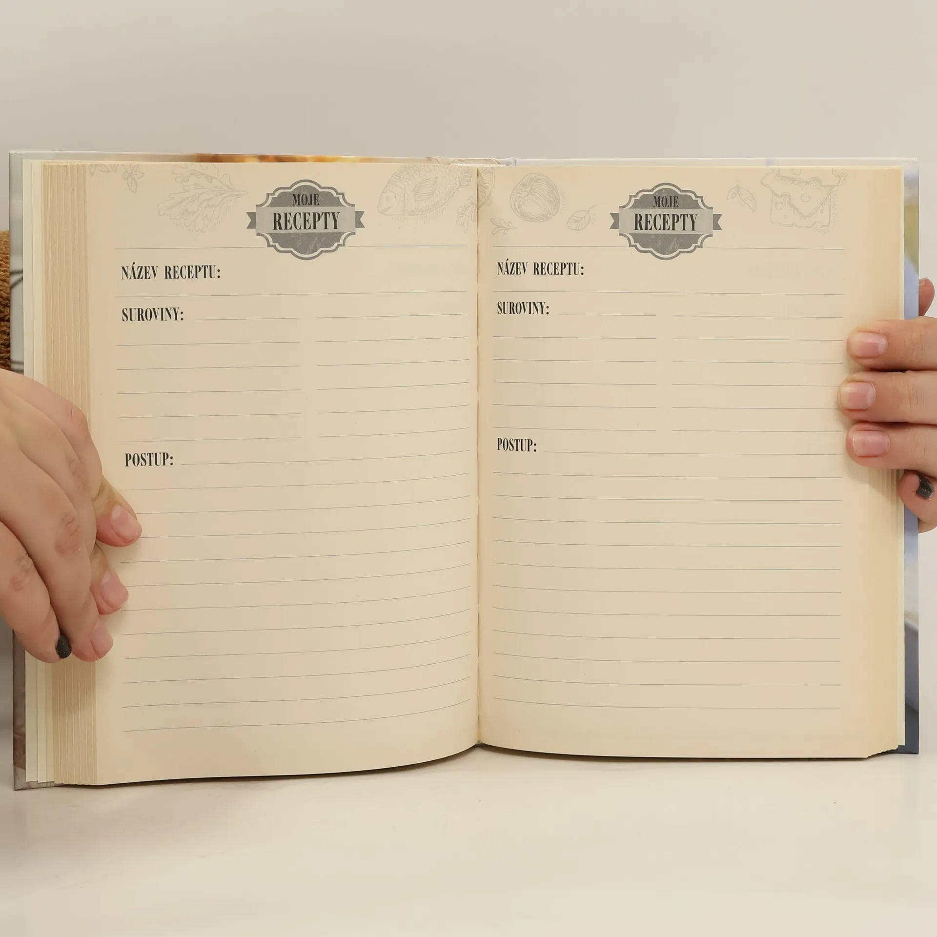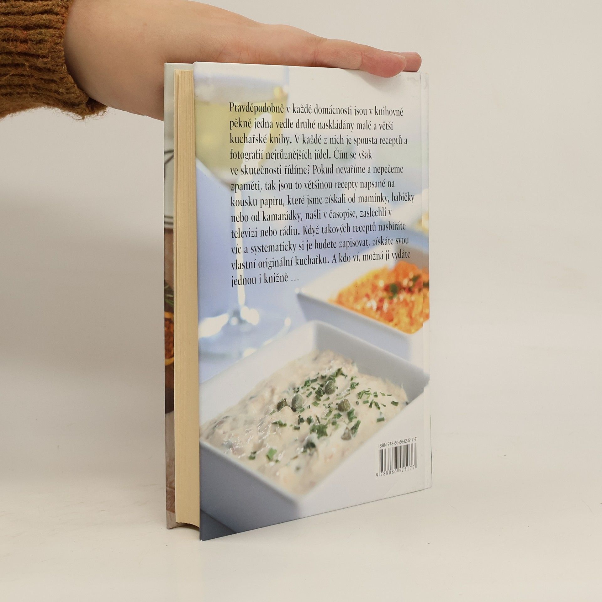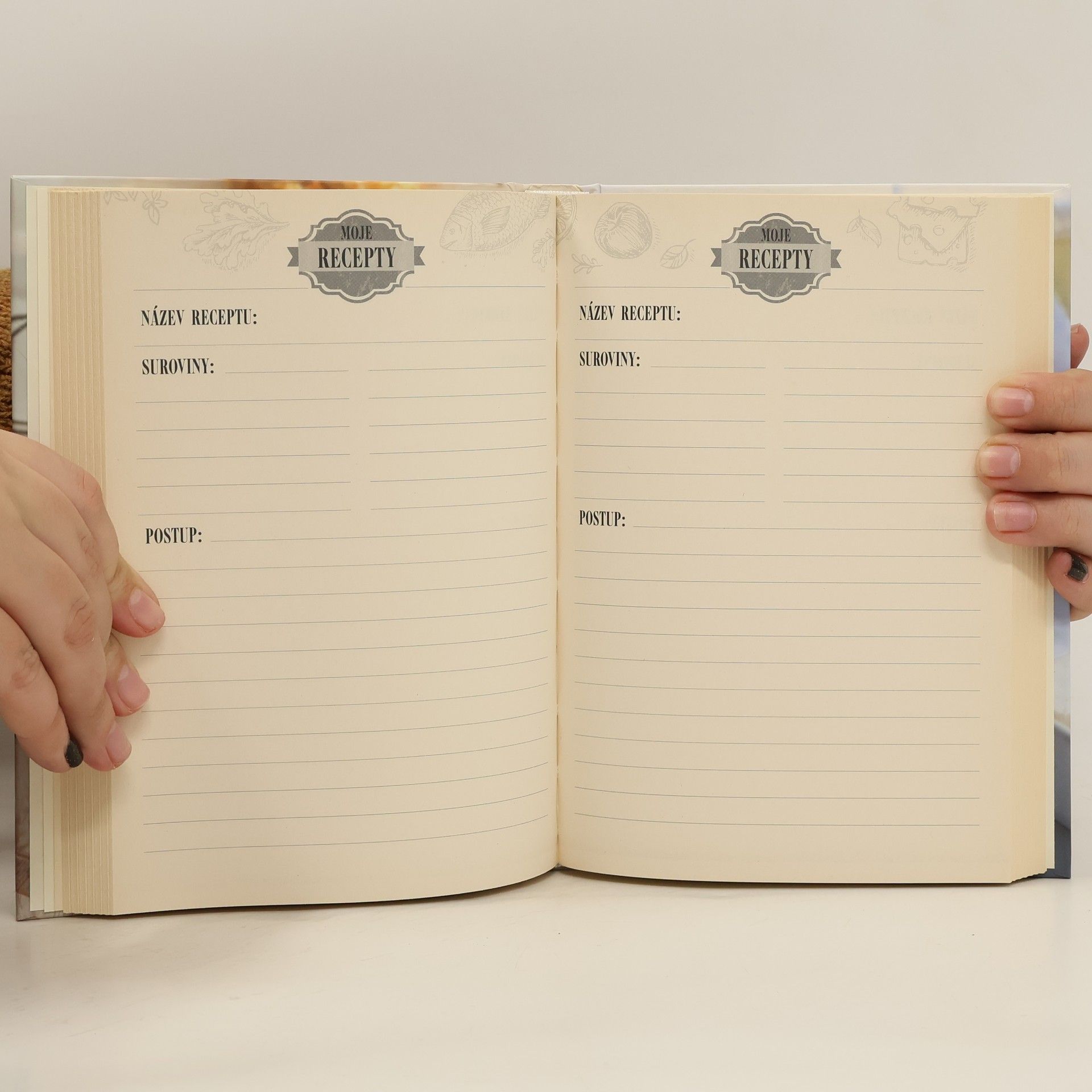 Pravděpodobně v každé domácnosti jsou v knihovně pěkně jedna vedle druhé naskládány malé i větší kuchařské knihy. V každé z nich je spousta receptů a fotografií nejrůznějších jídel. Čím se však ve skutečnosti řídíme? Pokud nevaíme a nepečeme zpaměti, tak jsou to většinou recepty napsané na kousku papíru, které jsme získali od maminky, babičky nebo od kamarádky, našli v časopise, zaslechli v televizi nebo rádiu. Když takových receptů nasbíráte víc a systematicky si je budete zapisovat, získáte svou vlastní originální kuchařku. A kdo ví, možná ji jednou vydáte i knižně... Tato vázaná kniha obsahuje stránky pro vepsání vašich vlastních receptů. Každá stránka je upravena pro zapsaní jednoho receptu a má nadepsané oddíly pro název receptu, ingredience a postup. Do knihy si můžete zapsat přes 200 receptů.