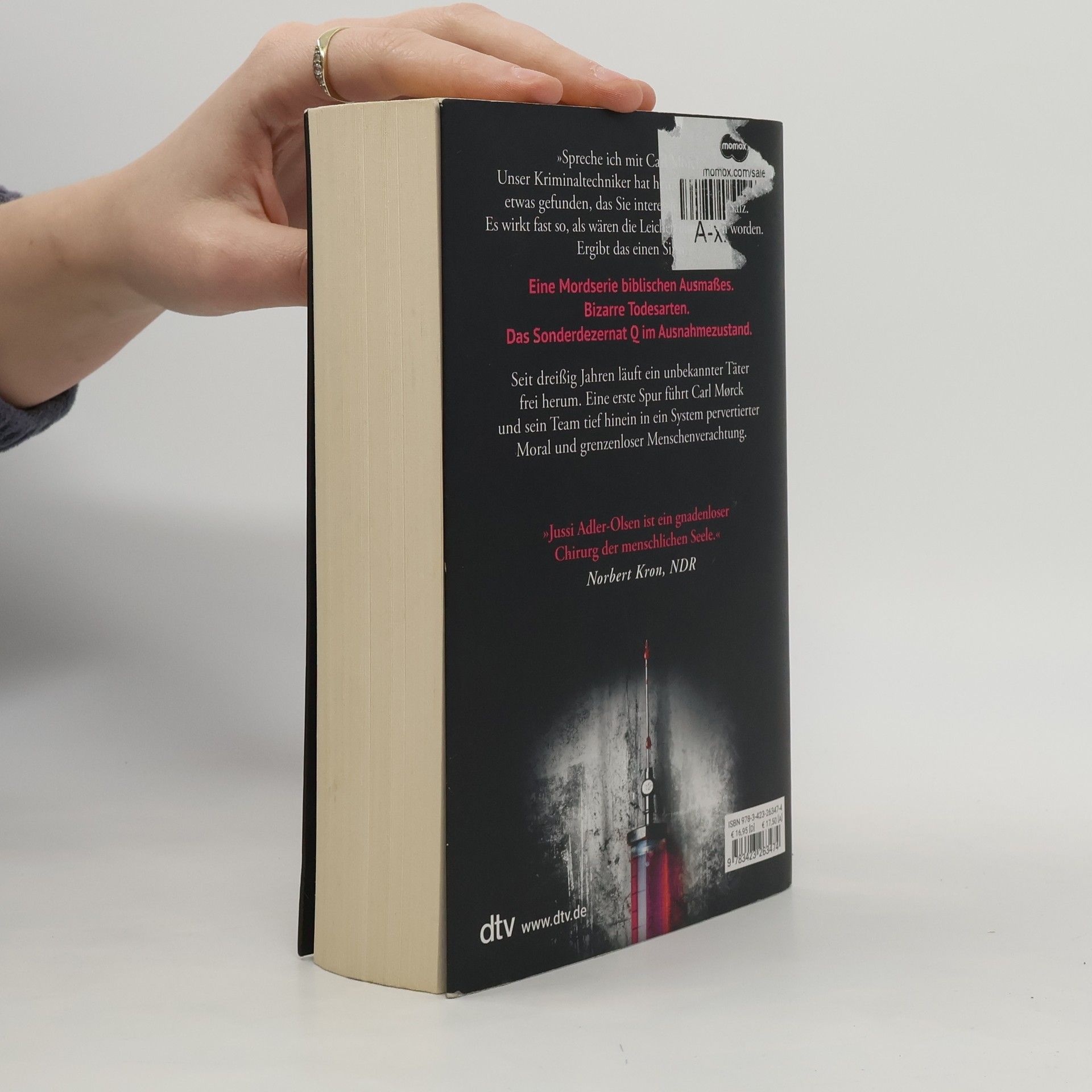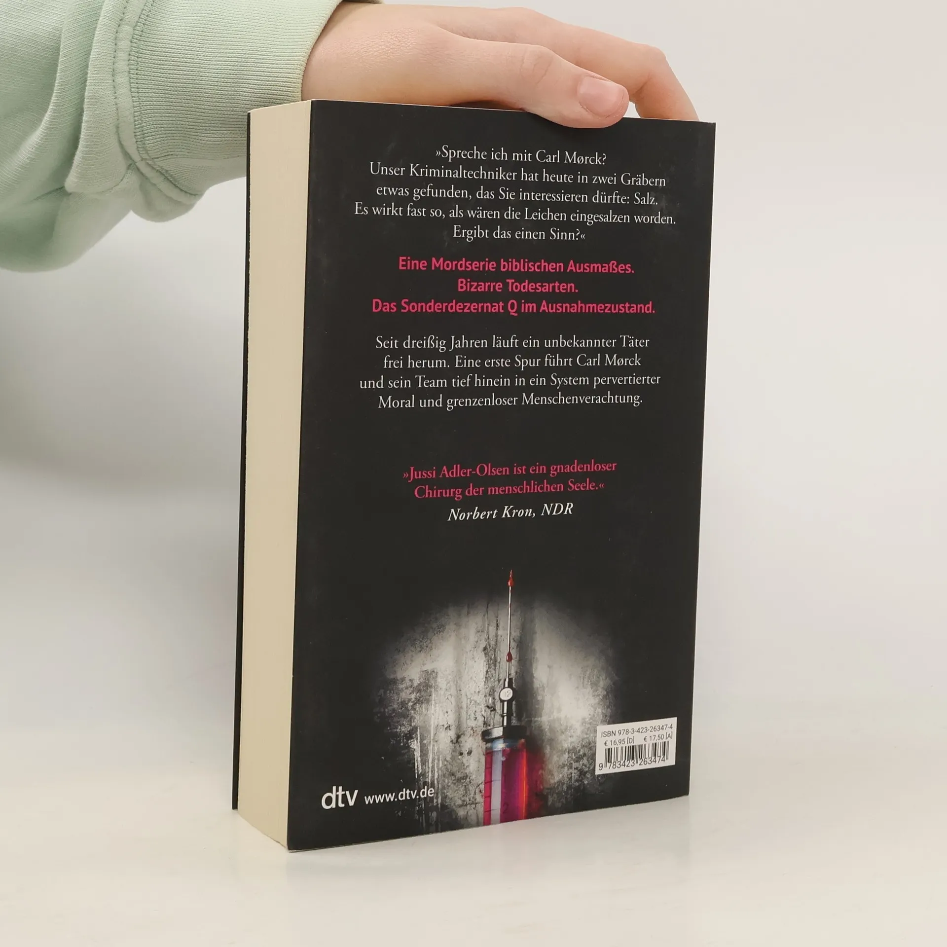 Eine Mordserie biblischen Ausmaßes und bizarre Todesarten versetzen das Sonderdezernat Q in Ausnahmezustand. Ab Mitte Januar können Leser wöchentlich einen Band der beliebten Carl-Mørck-Reihe im E-Book zum Aktionspreis genießen und sich auf das atemberaubende Serien-Finale freuen. Im neunten Fall für Kriminalkommissar Carl Mørck wird an einem 60. Geburtstag ein Selbstmord begangen, der zur Wiederaufnahme eines ungeklärten Falls aus dem Jahr 1988 führt. Der Kriminaltechniker entdeckt in zwei Gräbern Salz, was darauf hindeutet, dass die Leichen eingesalzen wurden. Dies bringt Carl, Assad, Rose und Gordon an die Grenzen ihrer Ermittlungen: Seit drei Jahrzehnten tötet ein gerissener Serienmörder, ohne dass ihm ein Mord nachgewiesen werden kann. Die Spur führt das Team tief in ein System pervertierter Moral und grenzenloser Menschenverachtung. Eile ist geboten, denn die Zeit läuft... Die große skandinavische Bestseller-Reihe verspricht spannende Unterhaltung. „Wie immer ein echter Pageturner.“ – Kieler Magazin „Ein empfehlenswerter Thriller vom dänischen Meister.“ – Schweriner Volkszeitung Neben der Carl-Mørck-Reihe sind auch andere Titel von Jussi Adler-Olsen bei dtv erschienen, darunter „Das Alphabethaus“, „Das Washington-Dekret“, „Takeover“ und „Miese kleine Morde“.